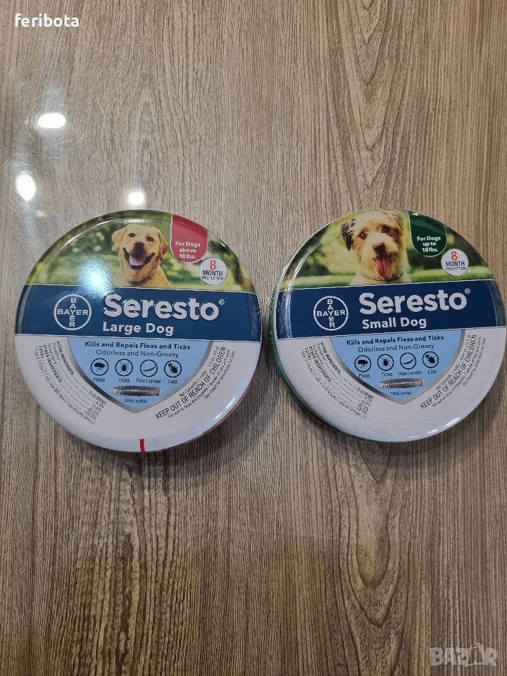 Противопаразитна каишка за малко и голямо куче или под и над 7кг. С доказан ефект на действие 7-8 месеца при спазване условията на използване. Не предпазва домът ви а само домашния любимец. Цената е за 1бр. без значение големината. Имам и ограничени бройки двойни каишки на цена 44€.