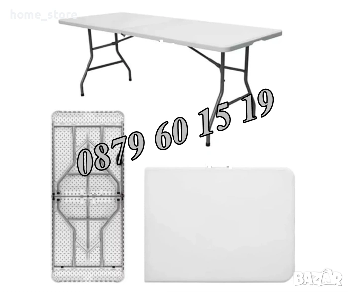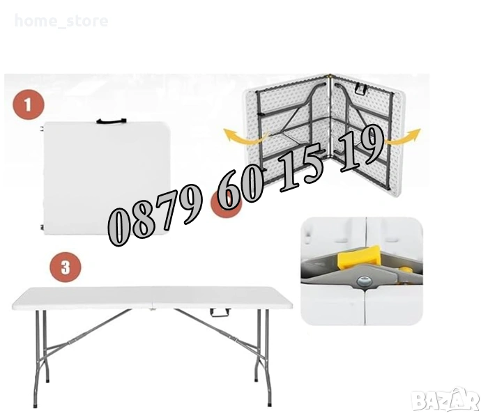 Сгъваема маса за кетъринг, градина, къмпинг 180/74 см с дръжка за носене