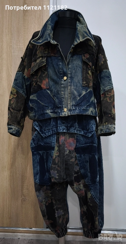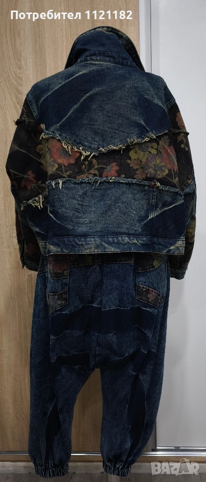 Дамски дънков комплект яке и потур.Якето е с дебела подплата отвътре(снимка 5). Якето има два предни джоба и тел на яката,за да си я обръщате както искате.