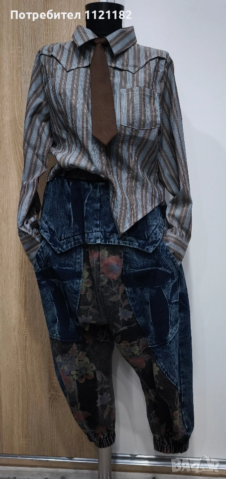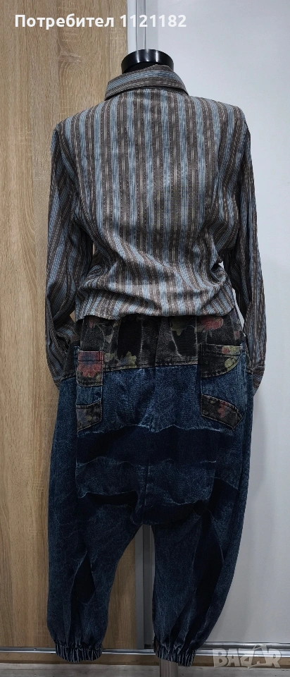 Потура е с два джоба отпред и два отзад.Талията е на ластик.Дължината е над кокалчетата.Комплекта е M размер но става и за L.