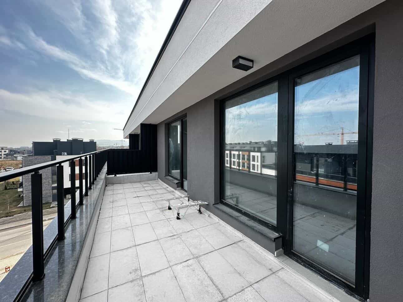 И двете помещения водят към голяма тераса с размер от 18 квадратни метра, която Ви предоставя панорамна гледка, която не може да бъде закрита.