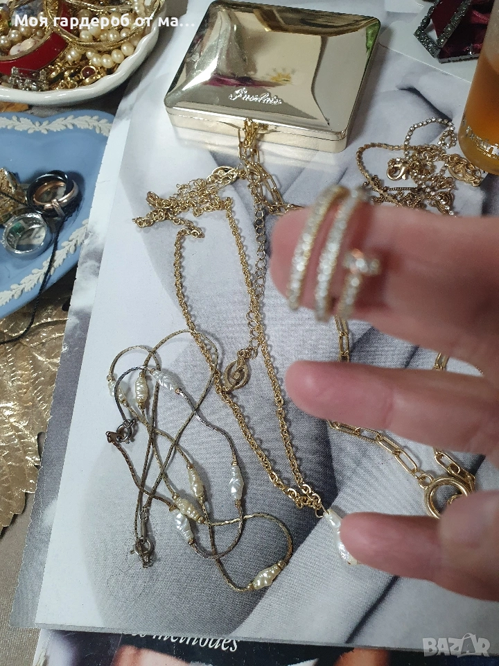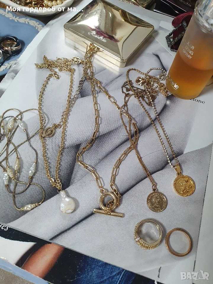 Лот от верижки нови от Лондон и прьстени подарьк .Сьщо бонус винтидж фина верижка и гривна с перлички