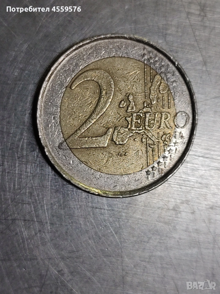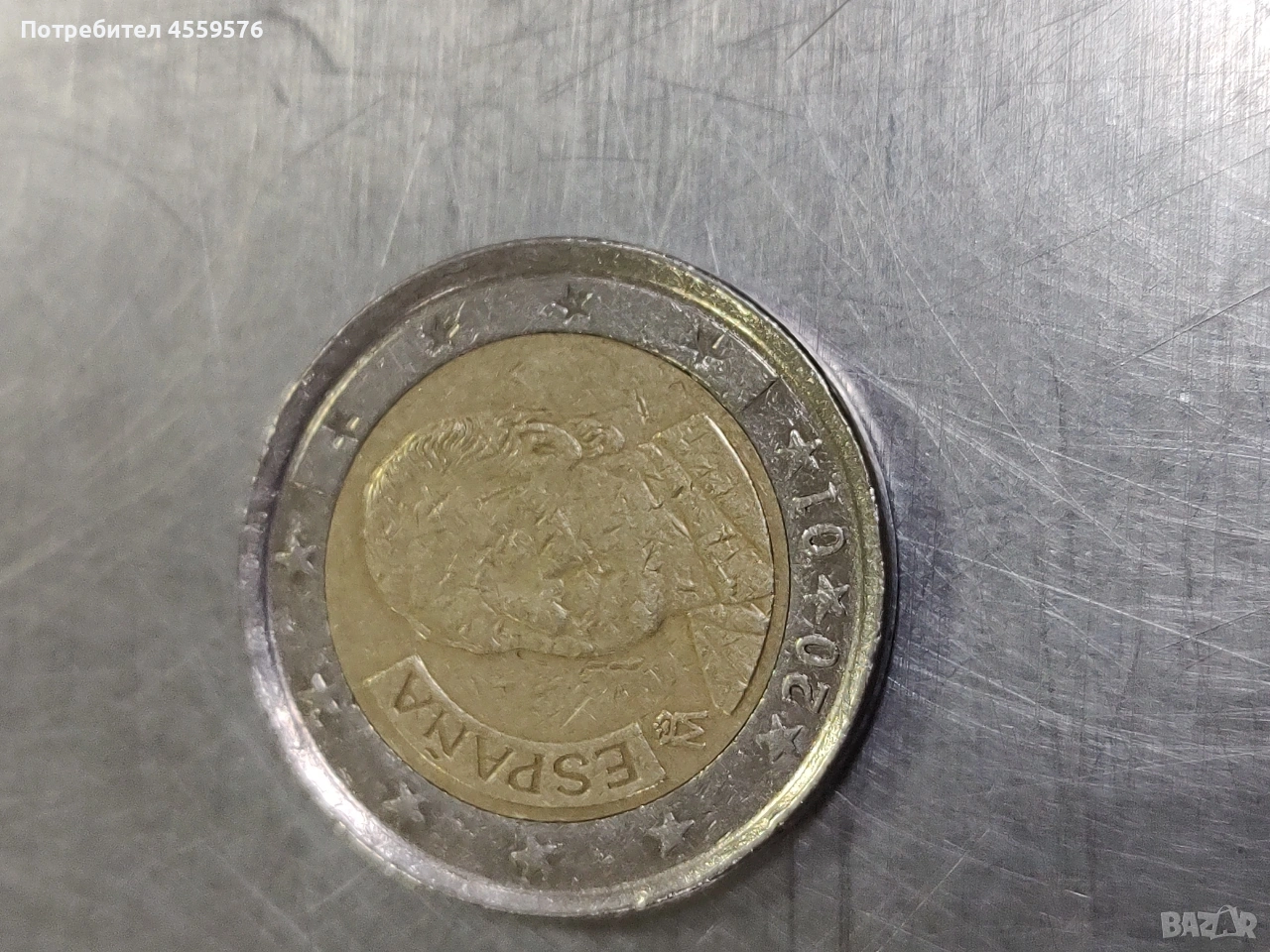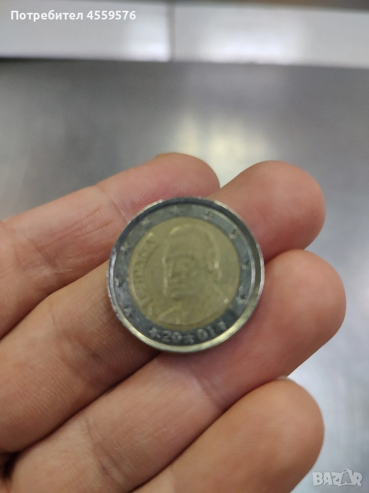 Испанска монета от 2 евро с много по- различна форма. Не мога да кажа за точното и описание,със сигурност не е нова. При интерес пращам повече снимки.
