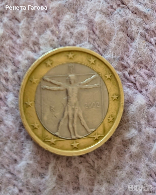 1 евро Италия 2002 год, снимка 1 - Нумизматика и бонистика - 53737848 1 евро Италия 2002 год, снимка 2 - Нумизматика и бонистика - 53737848 1/2