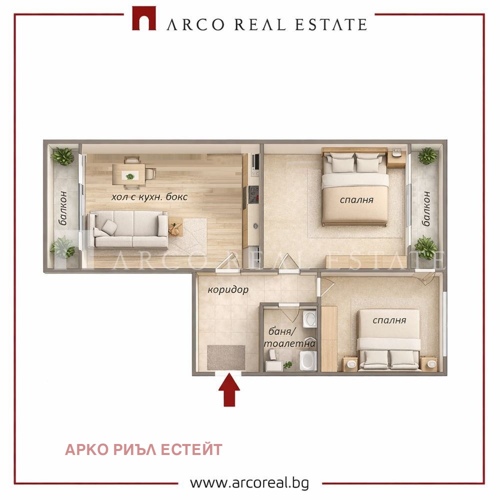 ARCO REAL ESTATE предлага за продажба двустаен апартамент на ул. 'История Славянобългарска'.
