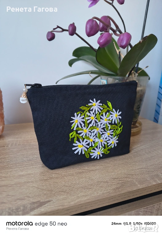 Ръчна изработка несесер с бродерия.Уникален подарък за специален повод.Практичен подарък.