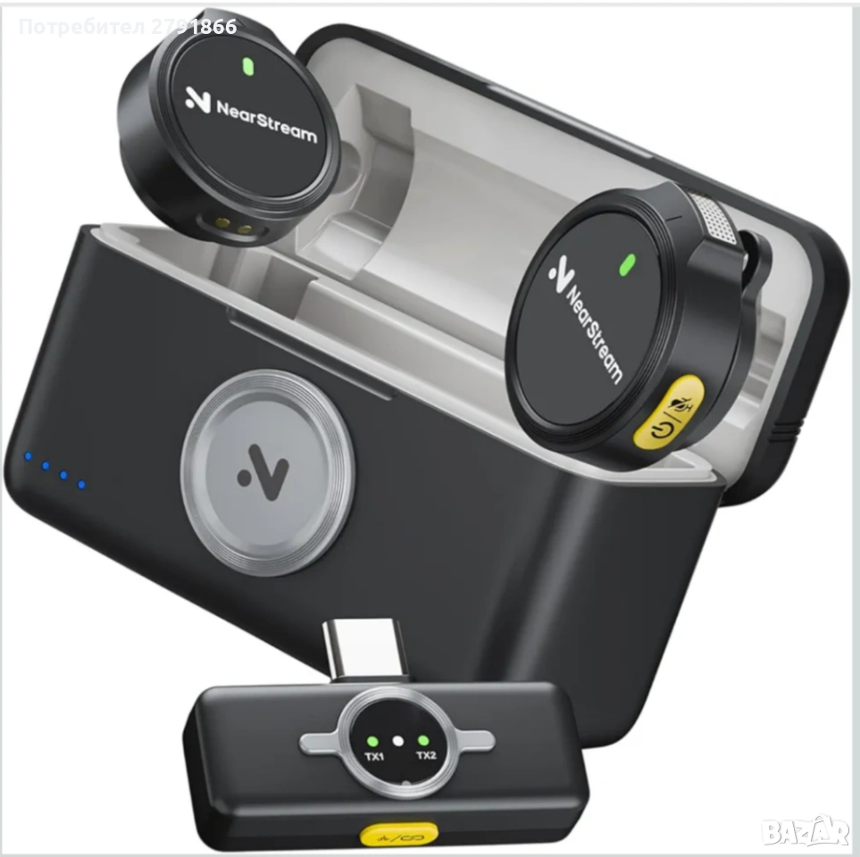 Безжични микрофони NearStream Lavalier с шумопотискане,200м. предаване за смартфон/DSLR/фотоапарат