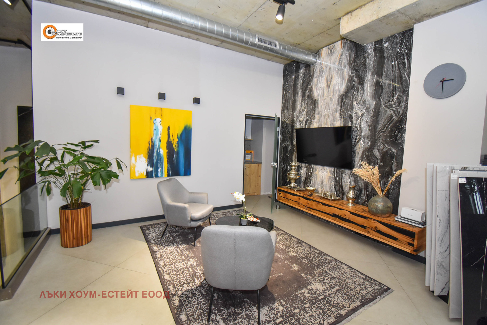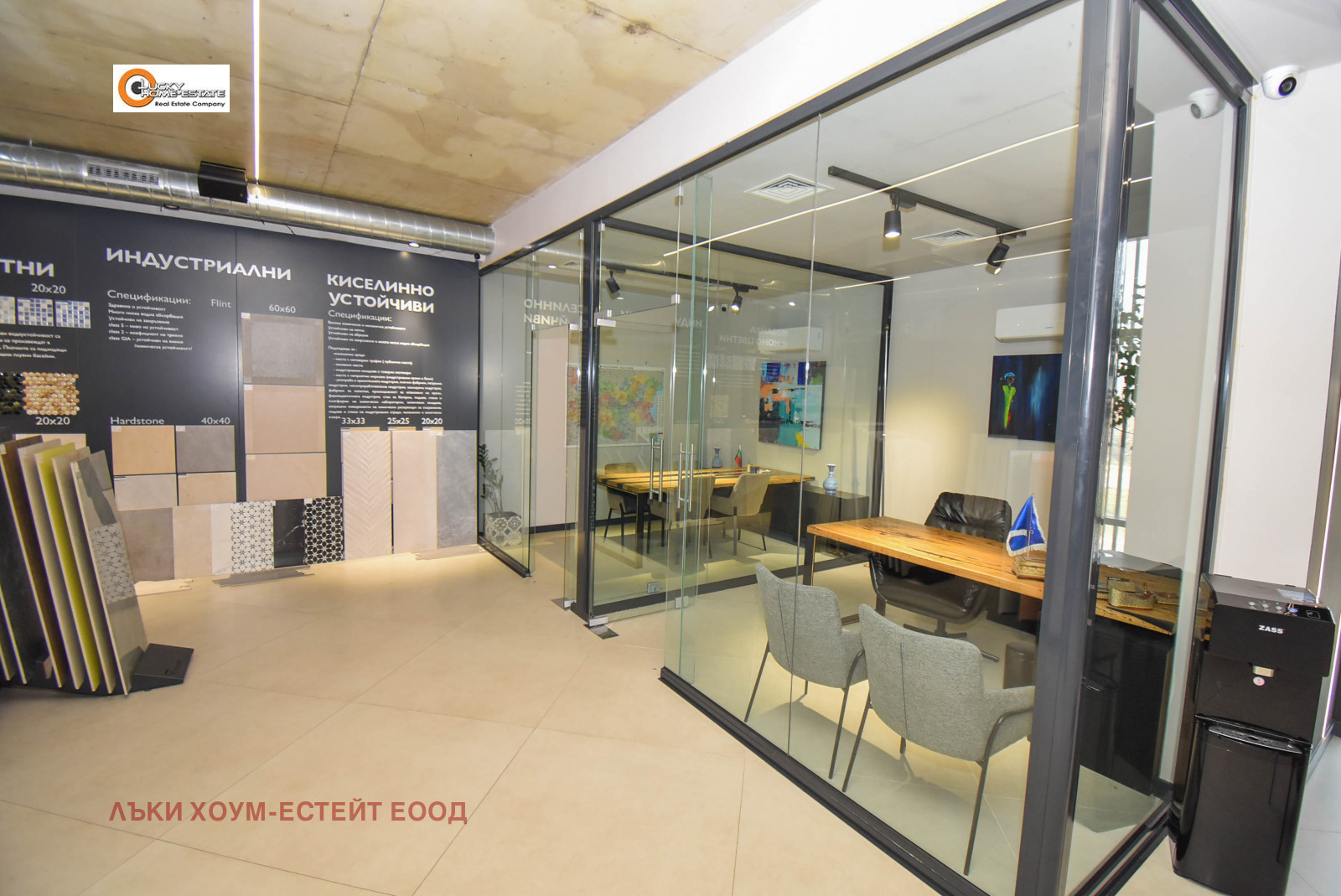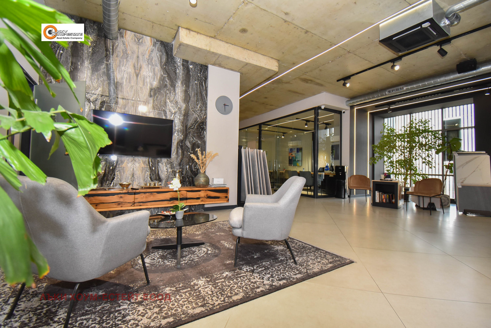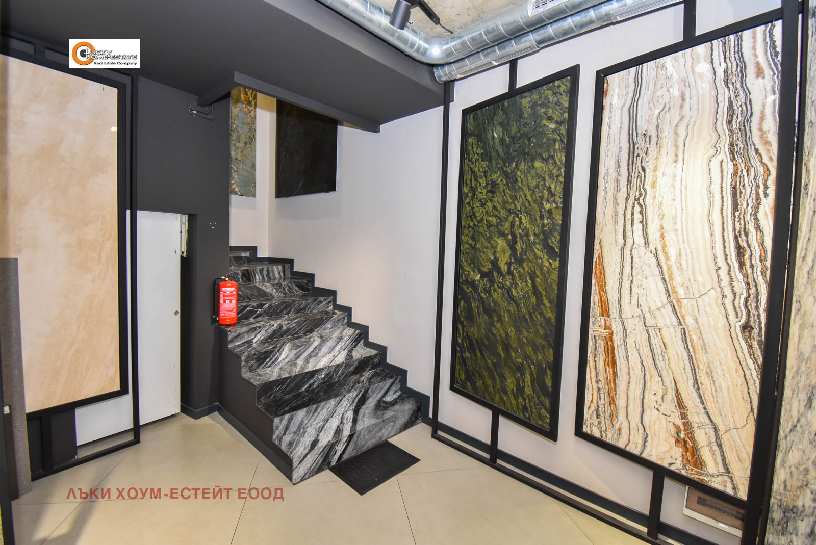 Лъки Хоум-Естейт предлага ЕКСКЛУЗИВНО за продажба луксозно завършен и напълно оборудван търговски обект, функциониращ като шоурум за санитария и естествен камък, разположен на две нива в модерна търговско-административна сграда.