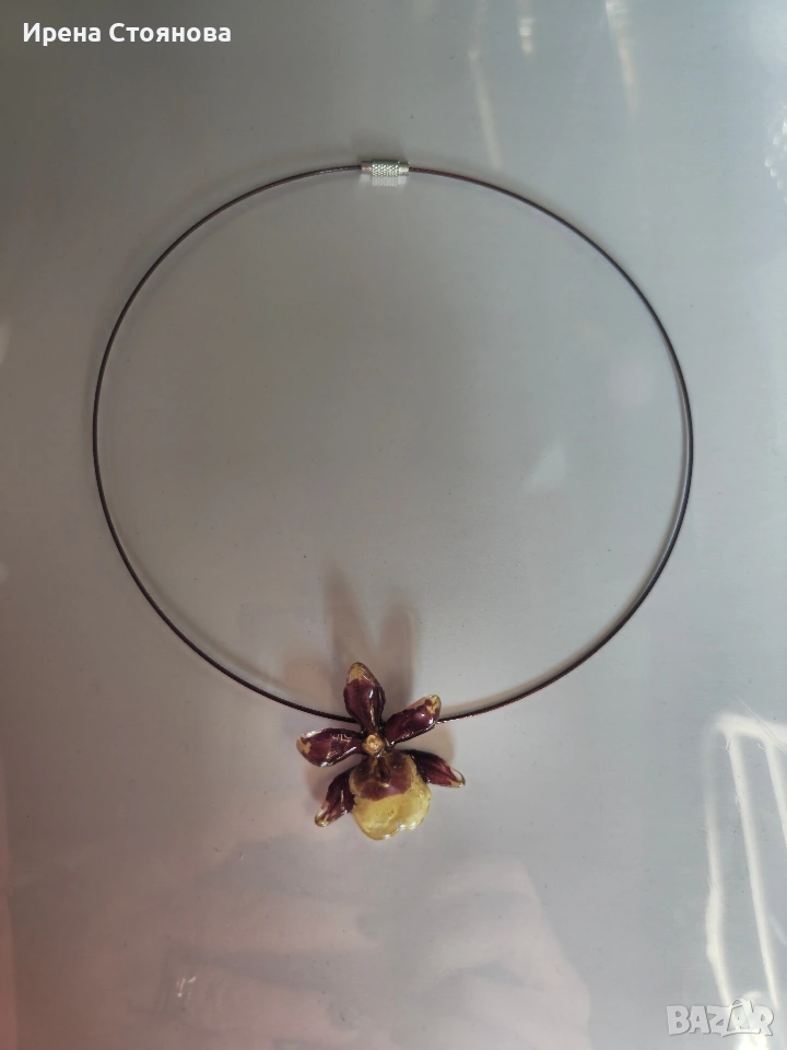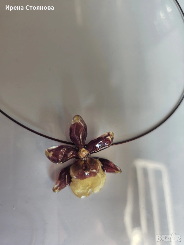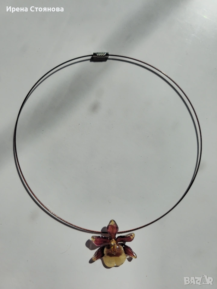 Колие с естествен цвят на мини орхидея. Цветче с размери 3,5/3,5 см. → Обява 53738050