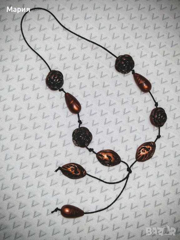 Гердан с разнообразни по форма мъниста в кафяв цвят. Не е носен.