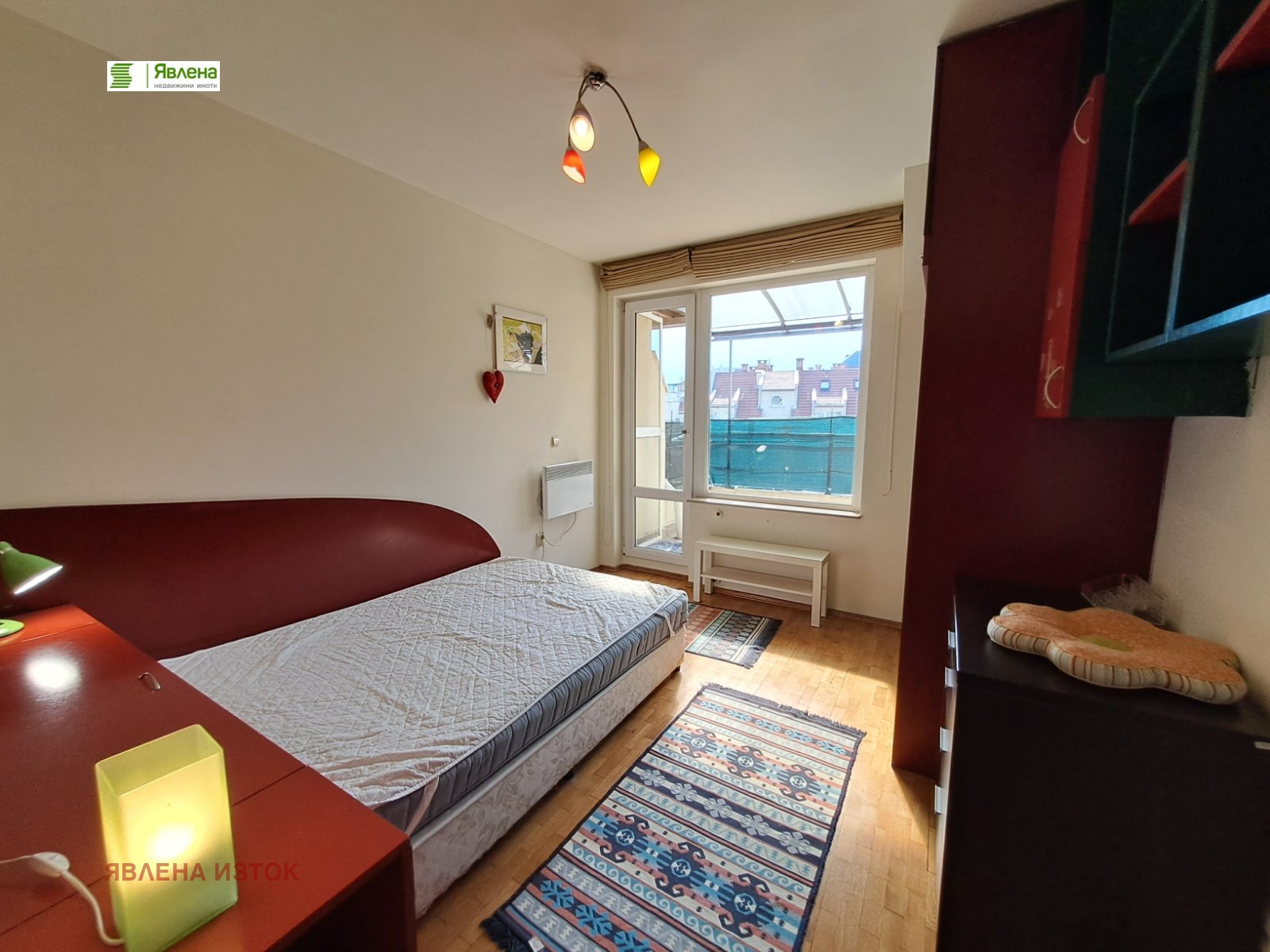 Изложението на жилището е южно и се отоплява на ток- има поставени климатици и проточен бойлер в банята. Сградата е построена 2005 година и е на комуникативно място. Има прекрасен голям озелелен двор, който осигурява отлично отстояние от улицата. Имотът е в близост до спирки на градския траспорт, МБАЛ Света София, магазини, Джъмбо, България Мол, Билла България, Фантастико, 05 ОУ 'Иван Вазов', детски градини и други. Имотът се намира на много комуникативно място и е подходящ както за отдаване под наем на чужденци, така и за семейство с деца.