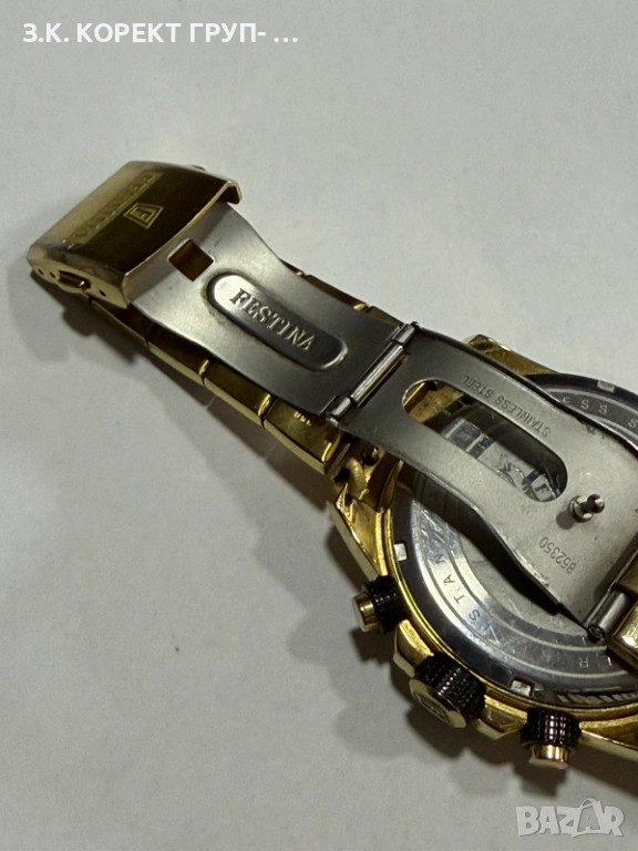 Мъжки часовник Festina Chronograph F20541. Часовника е с леки следи от употреба по корпуса и верижката, но не е в безполезно състояние. Предлага се без кутия. Кварцов механизъм