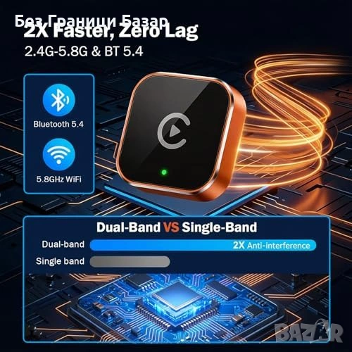 Нов CarPlay Wireless адаптер USB стабилна връзка Wi-Fi+Bluetooth iPhone