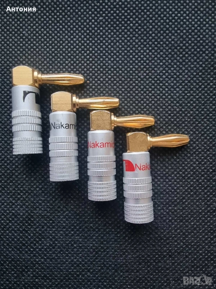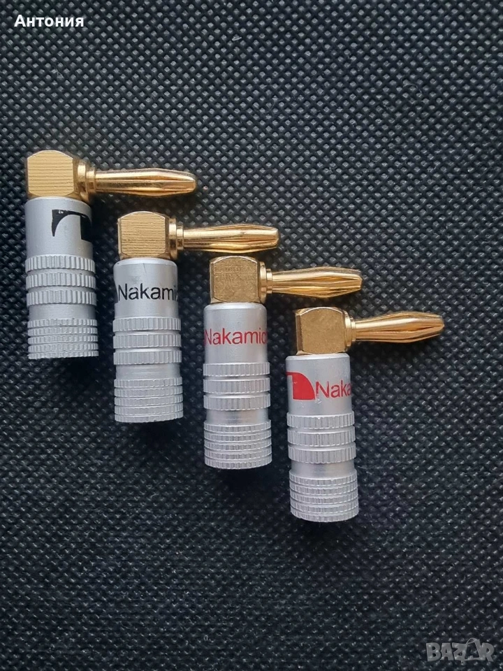 Г – образни позлатени банан–щекери за тонколони Nakamichi 4 бр. , снимка 1 - Тонколони - 53738595 Г – образни позлатени банан–щекери за тонколони Nakamichi 4 бр. , снимка 2 - Тонколони - 53738595 1/2