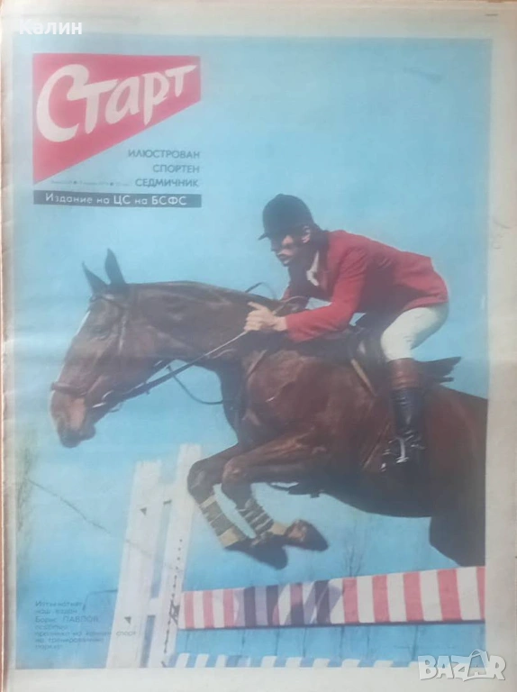 Продавам брой 249 от 9 март 1976 година на вестник „Старт” на цена 10,50 евро, със снимка на първата страница на изтъкнатият наш ездач Борис Павлов и снимка на последната страница на един от най-старите футболни клубове на Скандинавия „Викинг”-многократен шампион на Норвегия и носител на купата на страната.