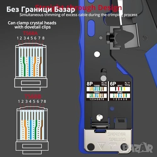 Пас-тру RJ45 система за по-лесно вкарване на жилата и автоматично подрязване на излишъка