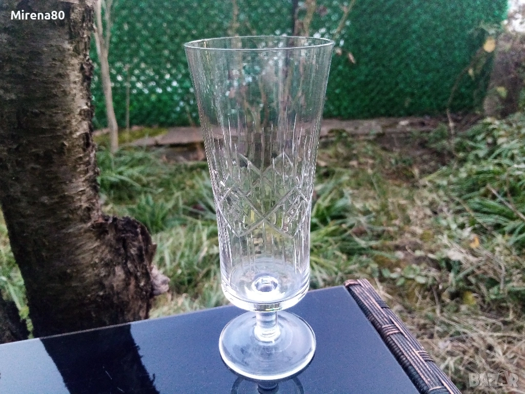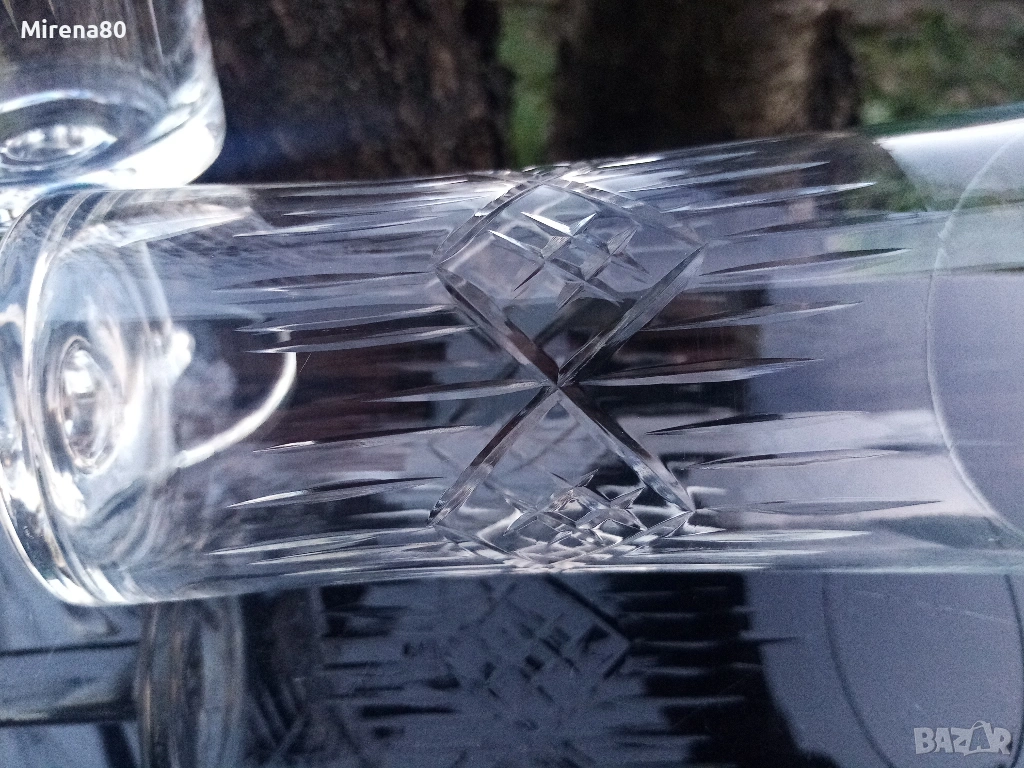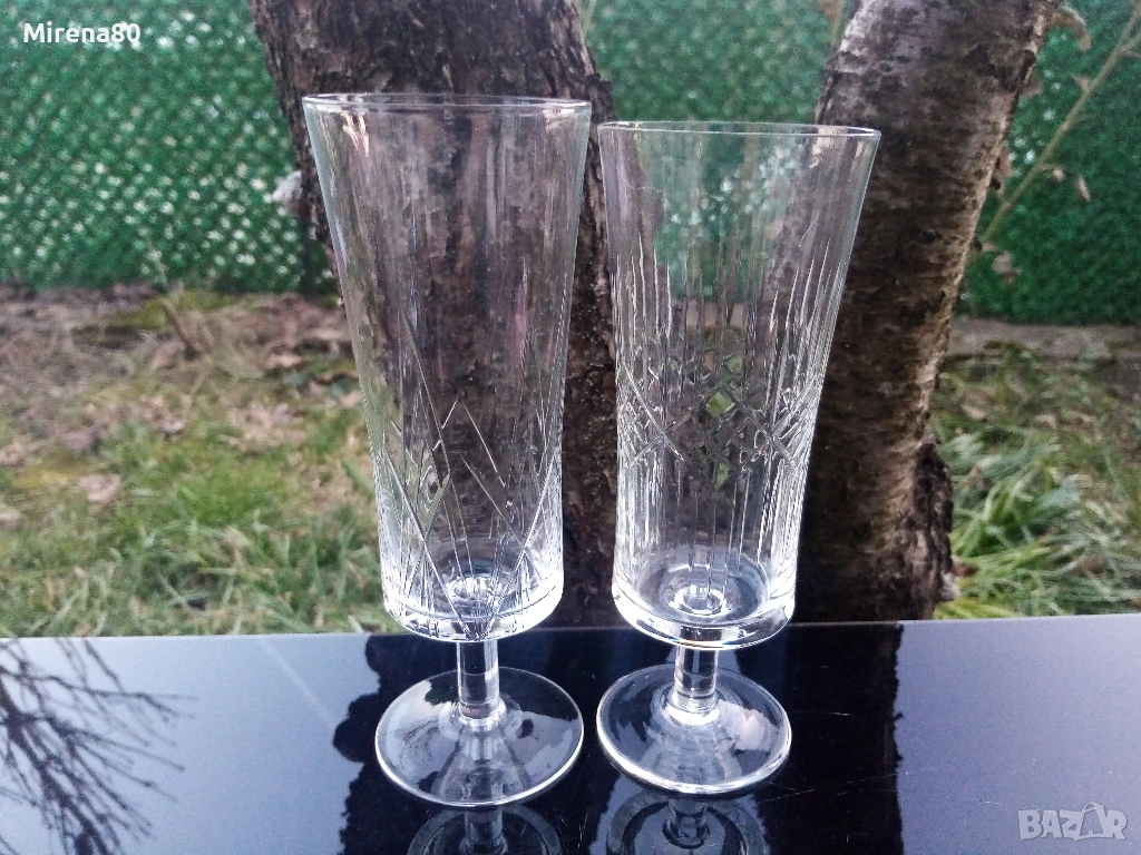 Представям ви един мултифункционален сервиз - чашите са подходящи за вода, безалкохолно, бира, коктейли и т.н. Фини, тънкостенни с нежна гравюра и ясен кристален звън. Вмест. 250 мл, вис. 18, диам. 6.5 см. Едната чаша е с 5 мм по-висока от другите. Отлично състояние !