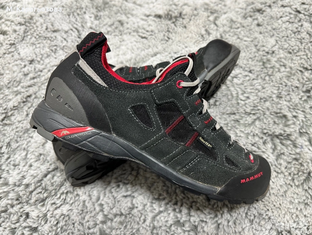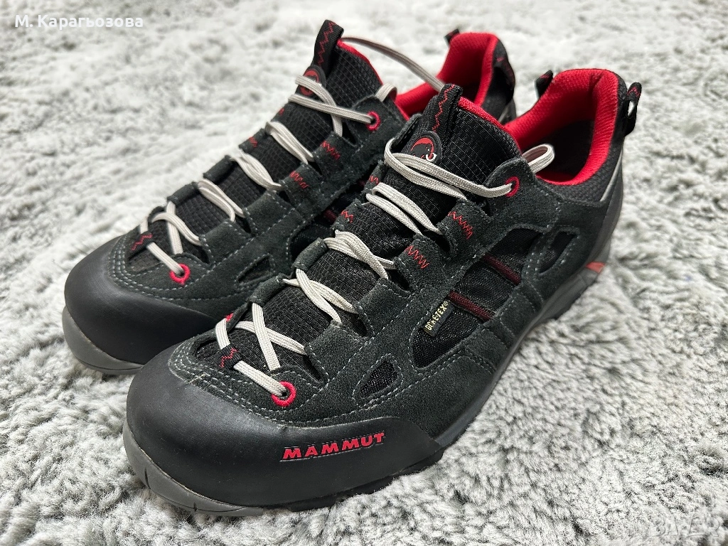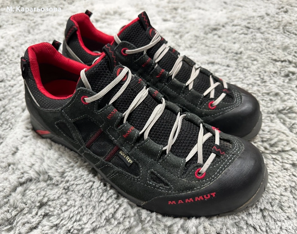 •Висок клас обувки за планина Mammut Redburn Low GTX. Моделът е идеален за технични преходи (approach), лесно катерене и стръмни терени, като предлага перфектен баланс между стабилност и лекота.