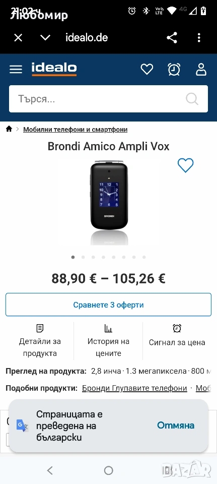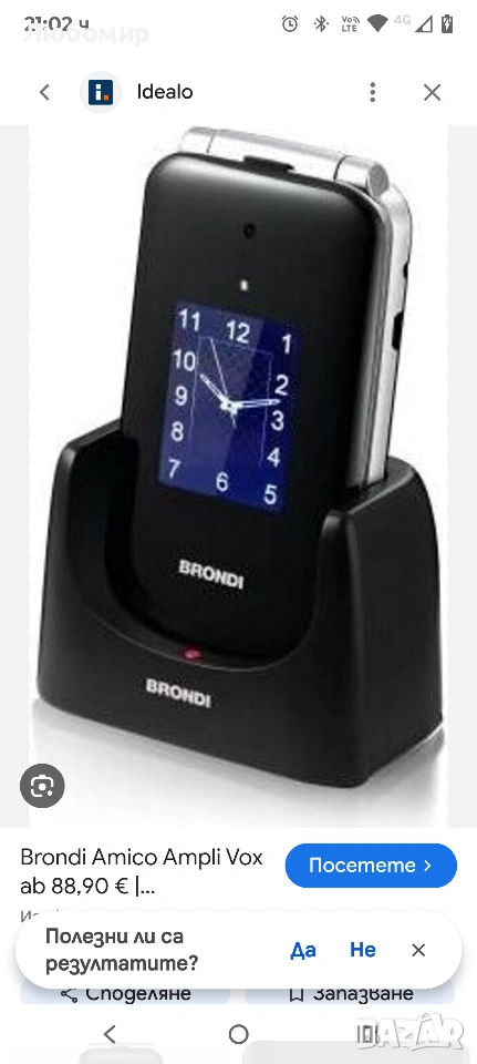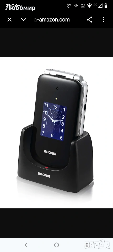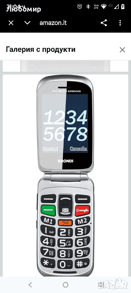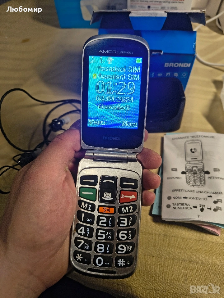 BRONDI Amico Supervoice, отключен, 0.03 GB, GSM мобилен телефон за възрастни хора с големи бутони, SOS бутон и функция за дистанционно управление, две SIM карти, висока и усилена сила на звука, черен.Зарядна база: С удобната и елегантна зарядна база, включена в комплекта, ще можете удобно да поставите мобилния си телефон на всякаква повърхност; за кратко време мобилният ви телефон ще бъде зареден отново и готов за употреба.