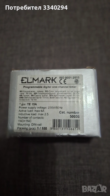 Едноканален таймер ТЕ 15 А → Обява 53739654