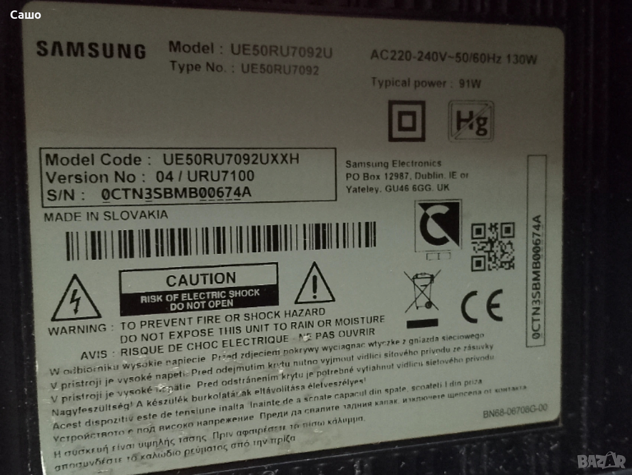 Телевизор  Samsung за части ., снимка 1 - Телевизори - 53739683 Телевизор  Samsung за части ., снимка 2 - Телевизори - 53739683 Телевизор  Samsung за части ., снимка 3 - Телевизори - 53739683 1/3