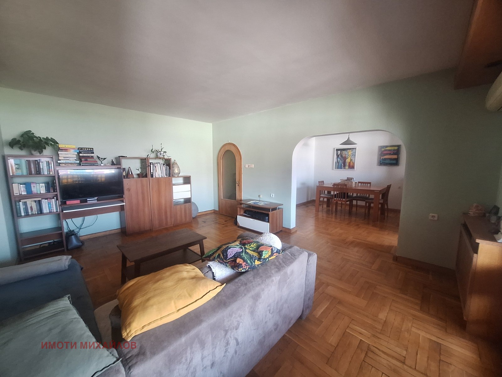 Разпределение : влиза се в голямо квадратно антре / с много възможности/, санитарен възел, в ляво е позиционирана трапезарията с кухнески бокс, портал към всекидневна / като има и отделен вход/ голяма тераса / с красива гледка към Витоша. В другият край на апартамента се минава през втори коридор, две самостоятелни спални по 17-18 кв.м. баня, мокро помещение и тераса към една от спалните.