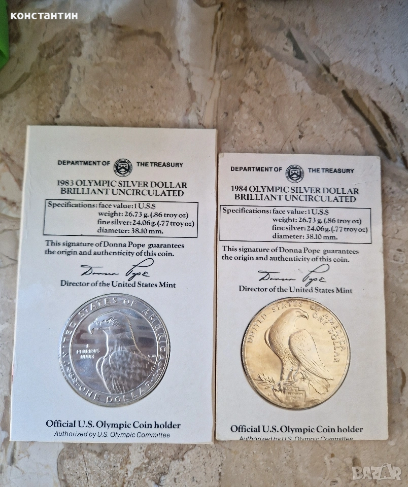 сребърни 1 долар 1983г и 1984г Олимпийски игри → Обява 53739766