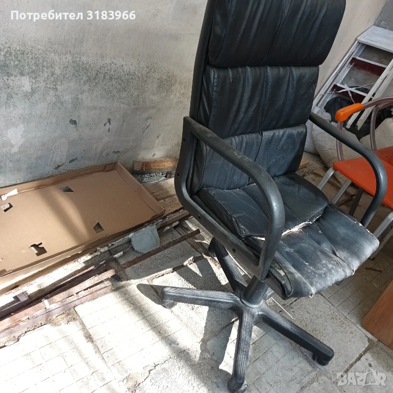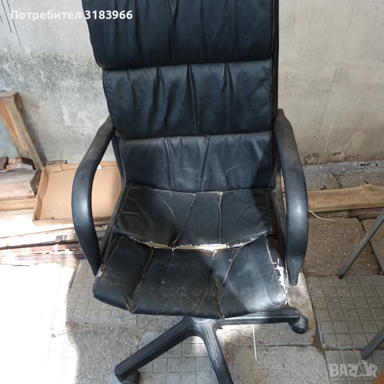 голям стол въртящ се на 5 колела .стола е здрав върти се .седалката в средата е скъсана .и амортисьора не работи.. използва се като обикновен стол за сядане .само лично предаване вземане от място ..