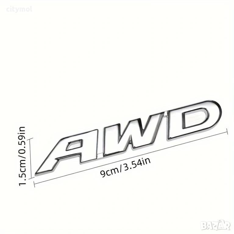 Универсална атрактивна метална емблема с надпис AWD. Можете да поставите емблемата навсякъде по автомобила: багажника, калника, предния капак, вратите и други части. В задния край има здрава двойнозалепваща лента, която я придържа здраво към повърхността. Емблемата е със слънцезащитен и водоустойчив слой.