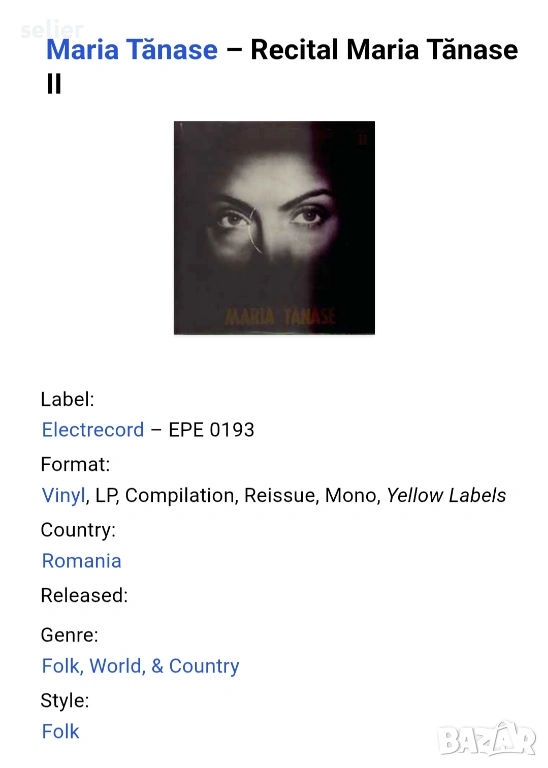 Maria Tănase ‎– Recital Maria Tănase II Издание 🇷🇴 ROMANIA Състояние на винила:VG+ Състояние на об → Обява 53740037