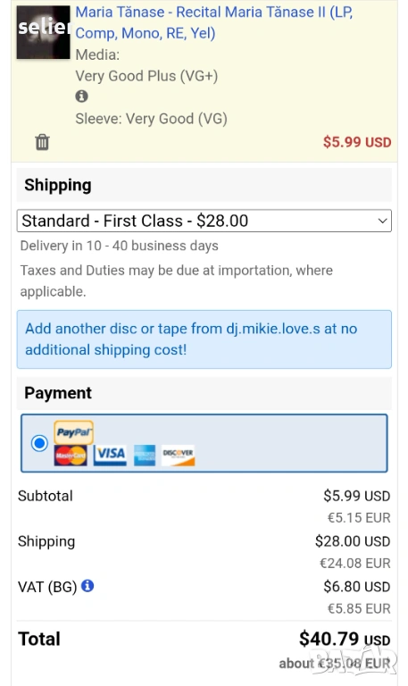 Състояние на винила:VG+