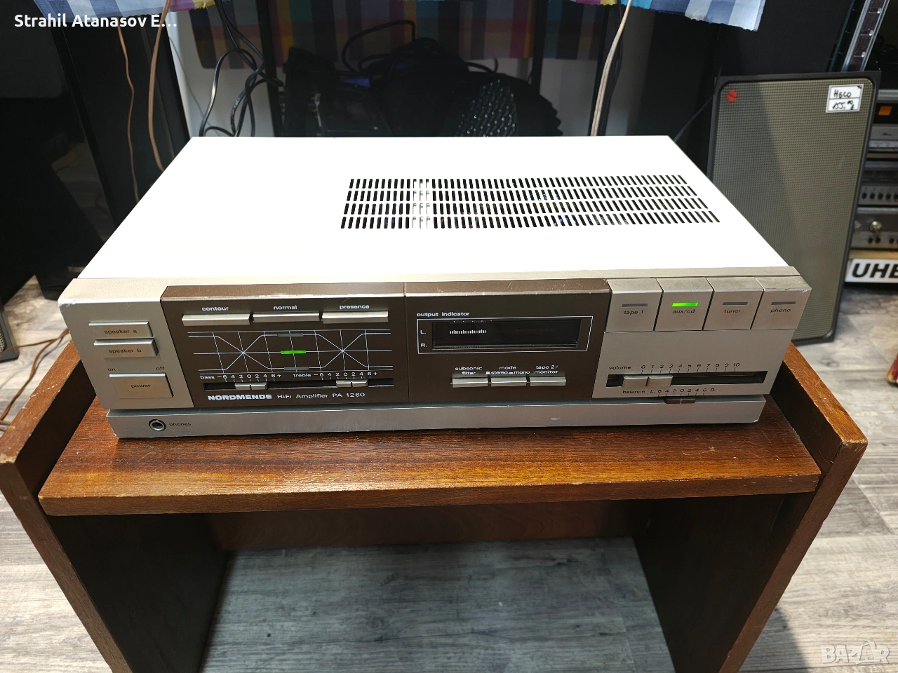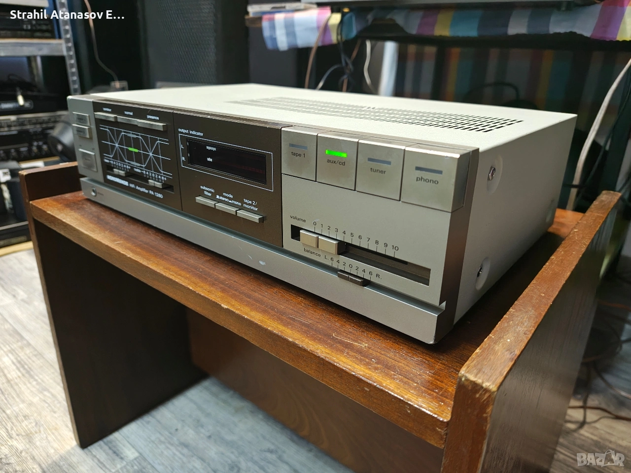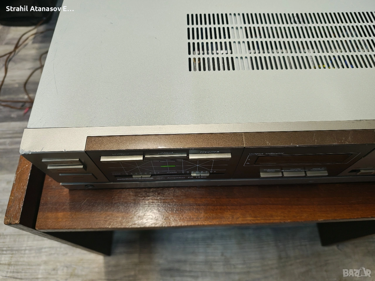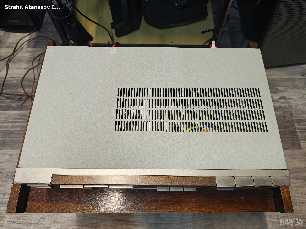 Ето го и него, грозничкият. Усилвателя с няколко забележки по корпуса, но? Усилвател с невероятни честоти и достатъчна мощ. Страхотен звук - тестван с няколко вида тонколони. Почистен, прегледан и тестван. В пълна изправност.
