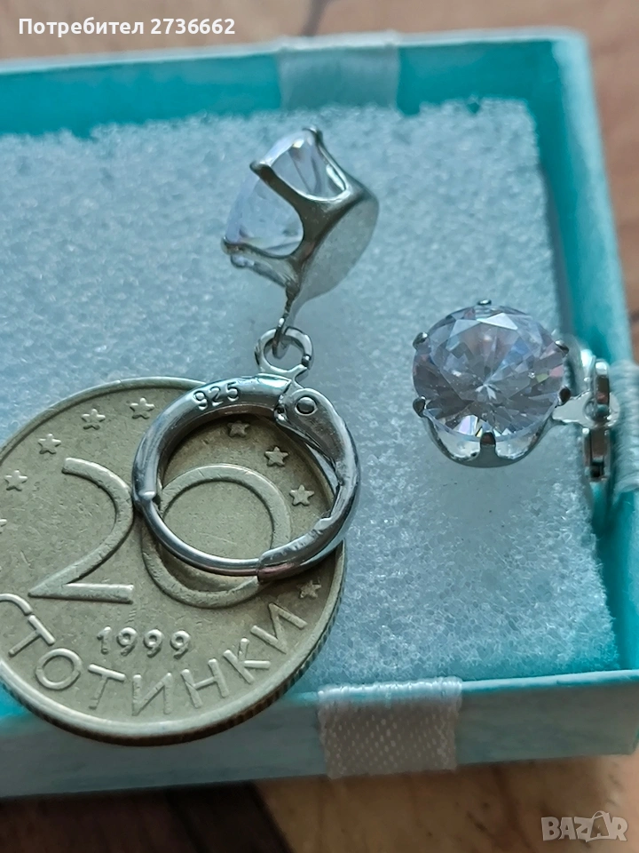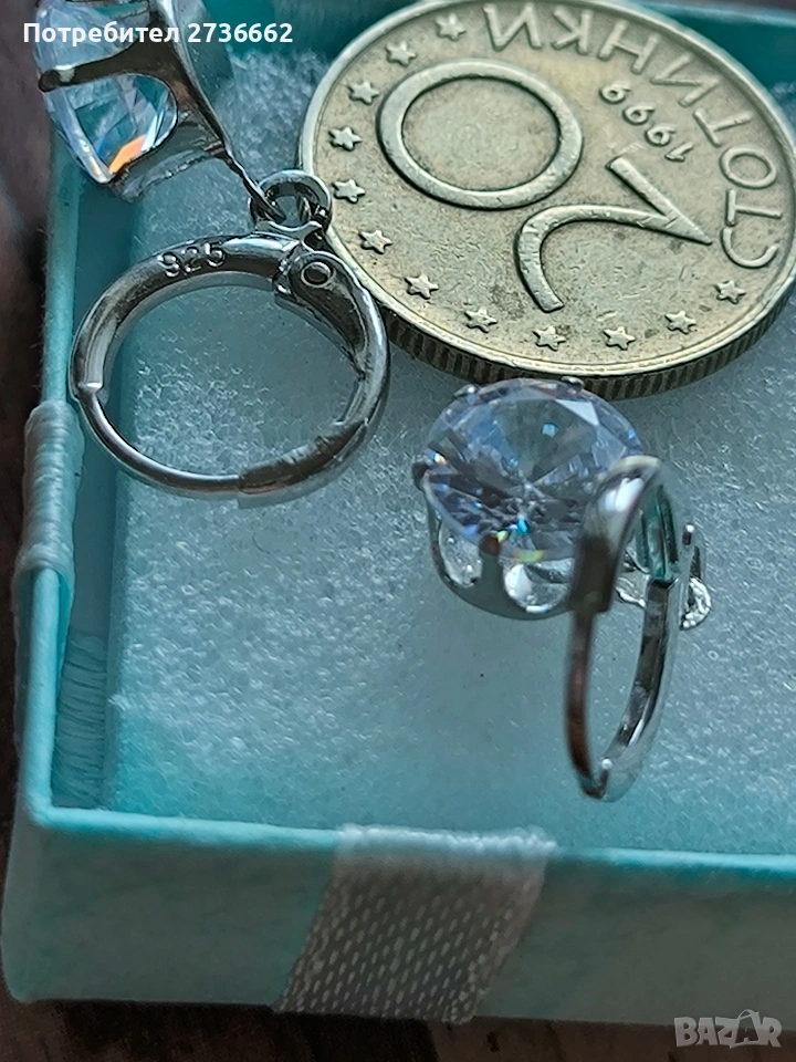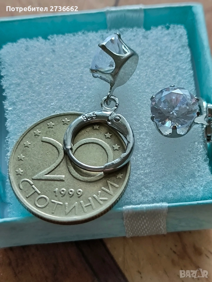 Сребърни обеци с бял цирконии → Обява 53740171