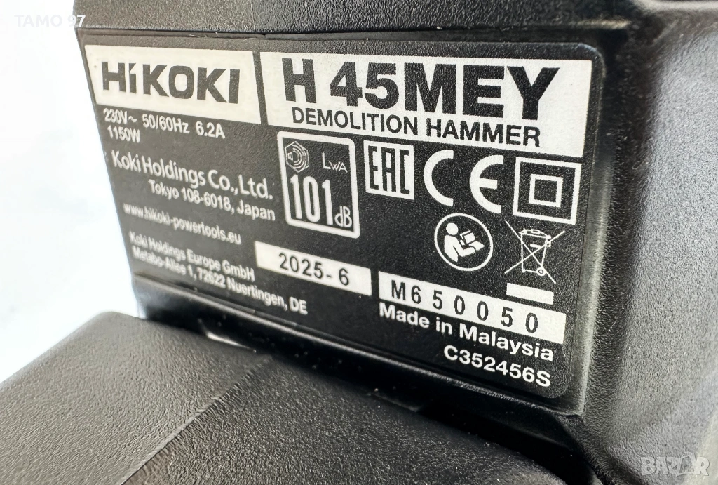 HiKoki H 45MEY - Мощен безчетков чист къртач 1150W 13.5J 2025г