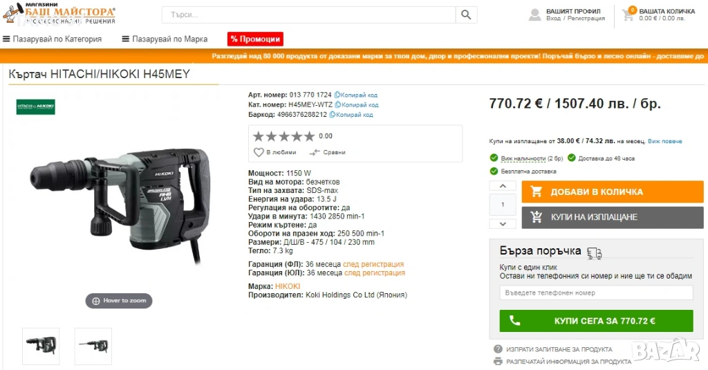 Магазинската цена е: 770евро