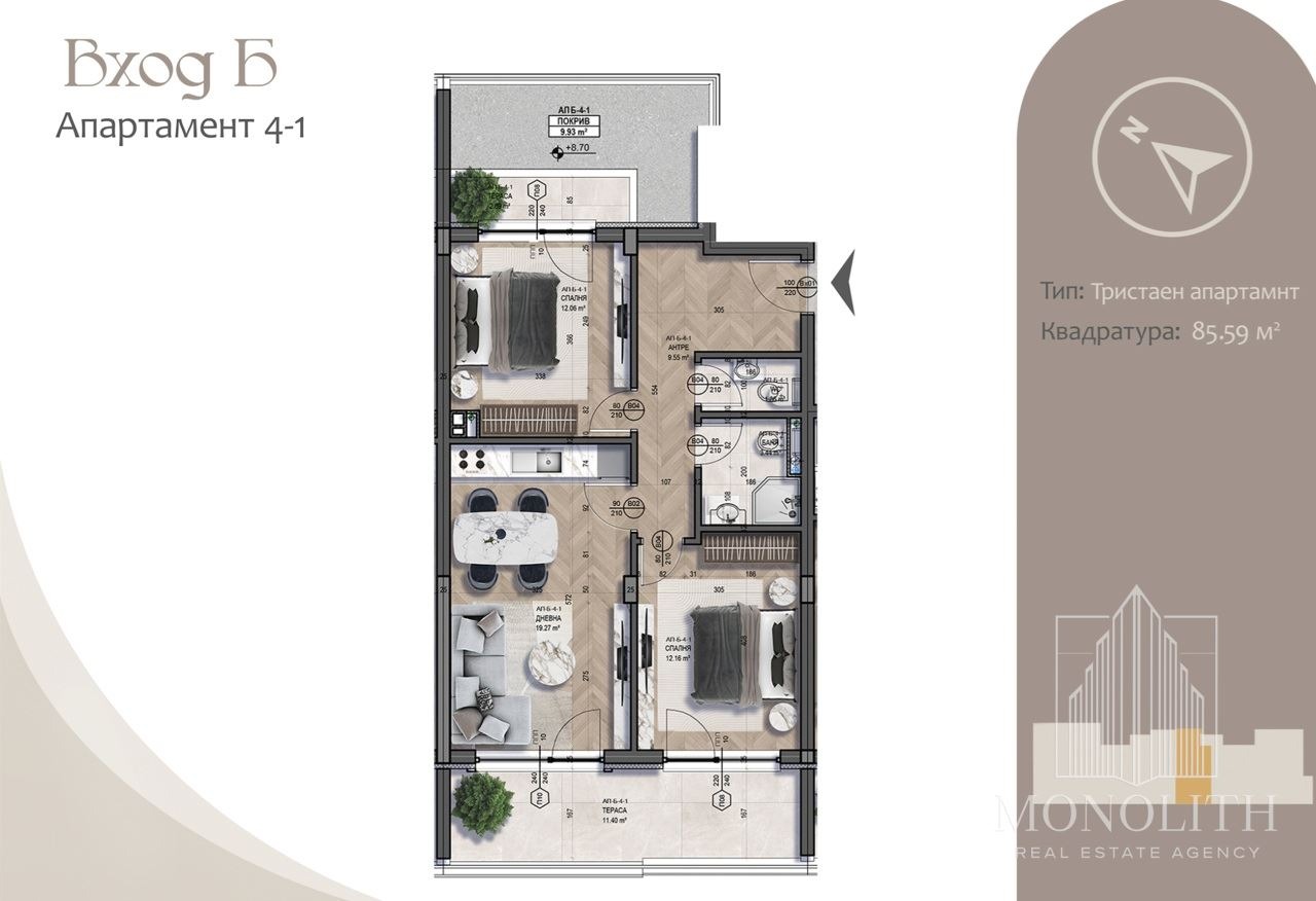 Monolith Estate представя за продажба, панорамент тристаен апартамент в кв. Бояна.