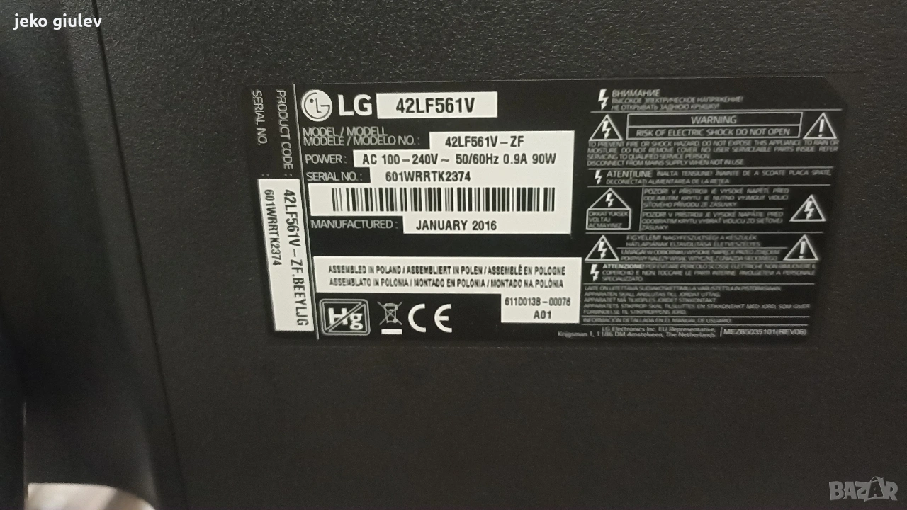 продавам телевизор LG 42 инча перфектна картина и звук ,дистанционно телевизора не е смарт