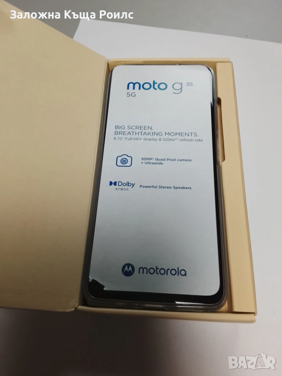 Motorola G35 5G 256GB. Телефонът е нов, не е използван. Отворен е само за снимките.