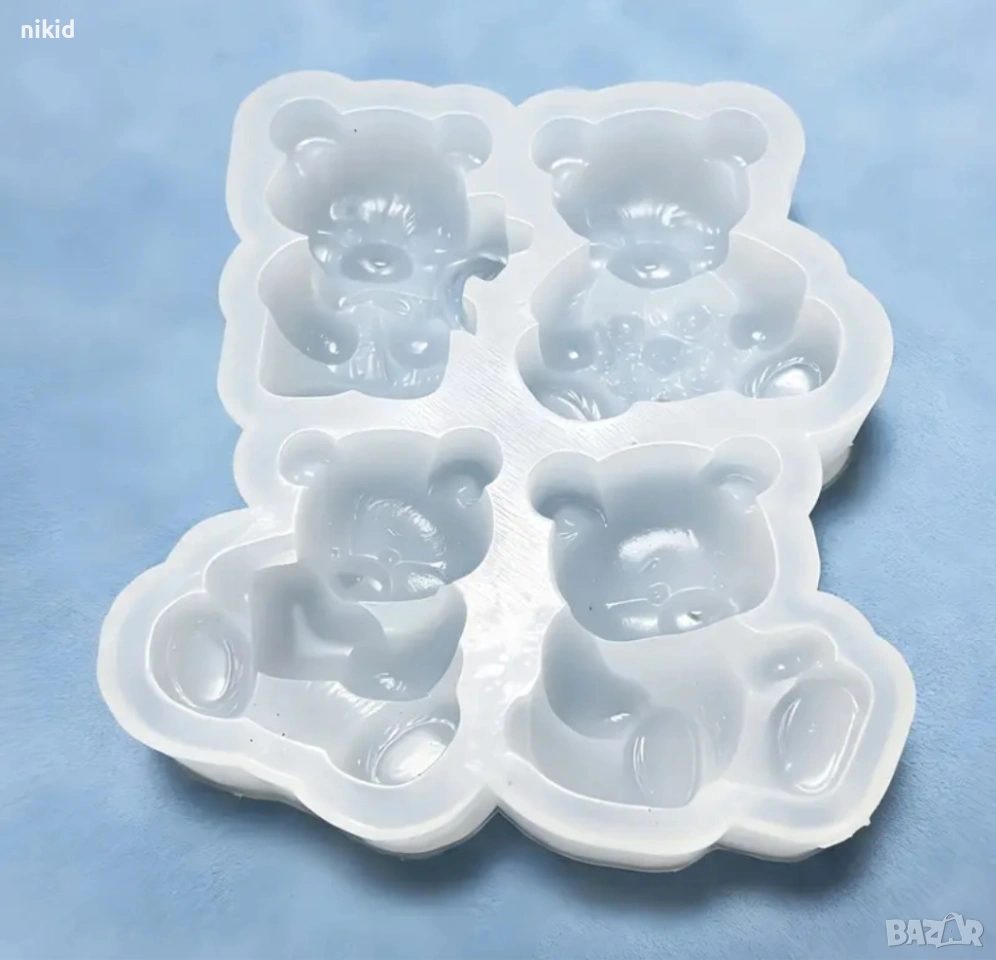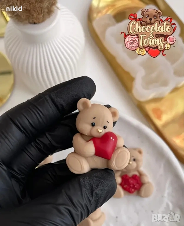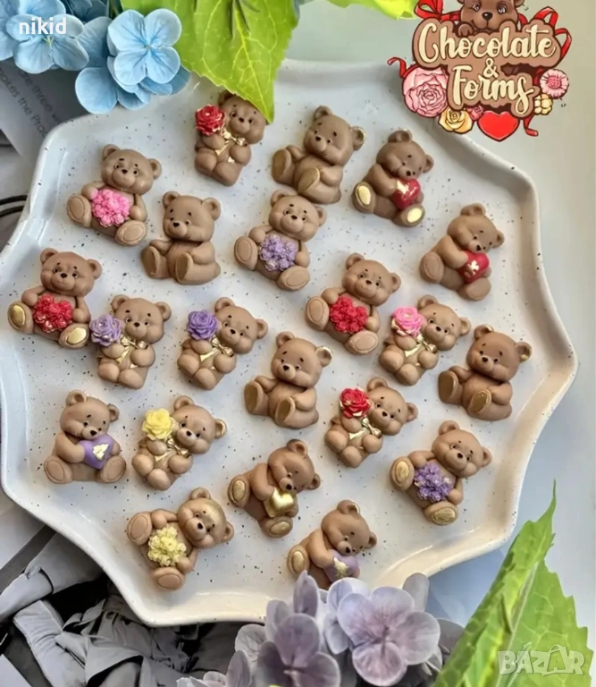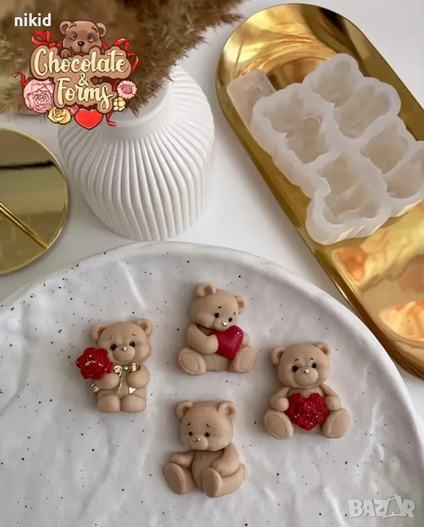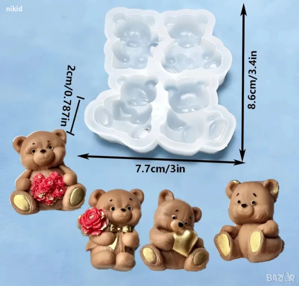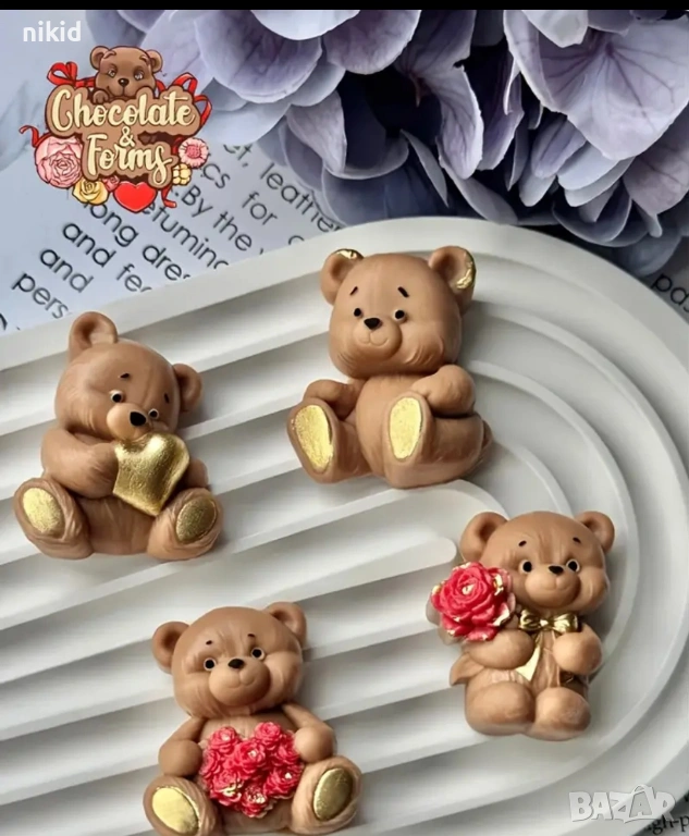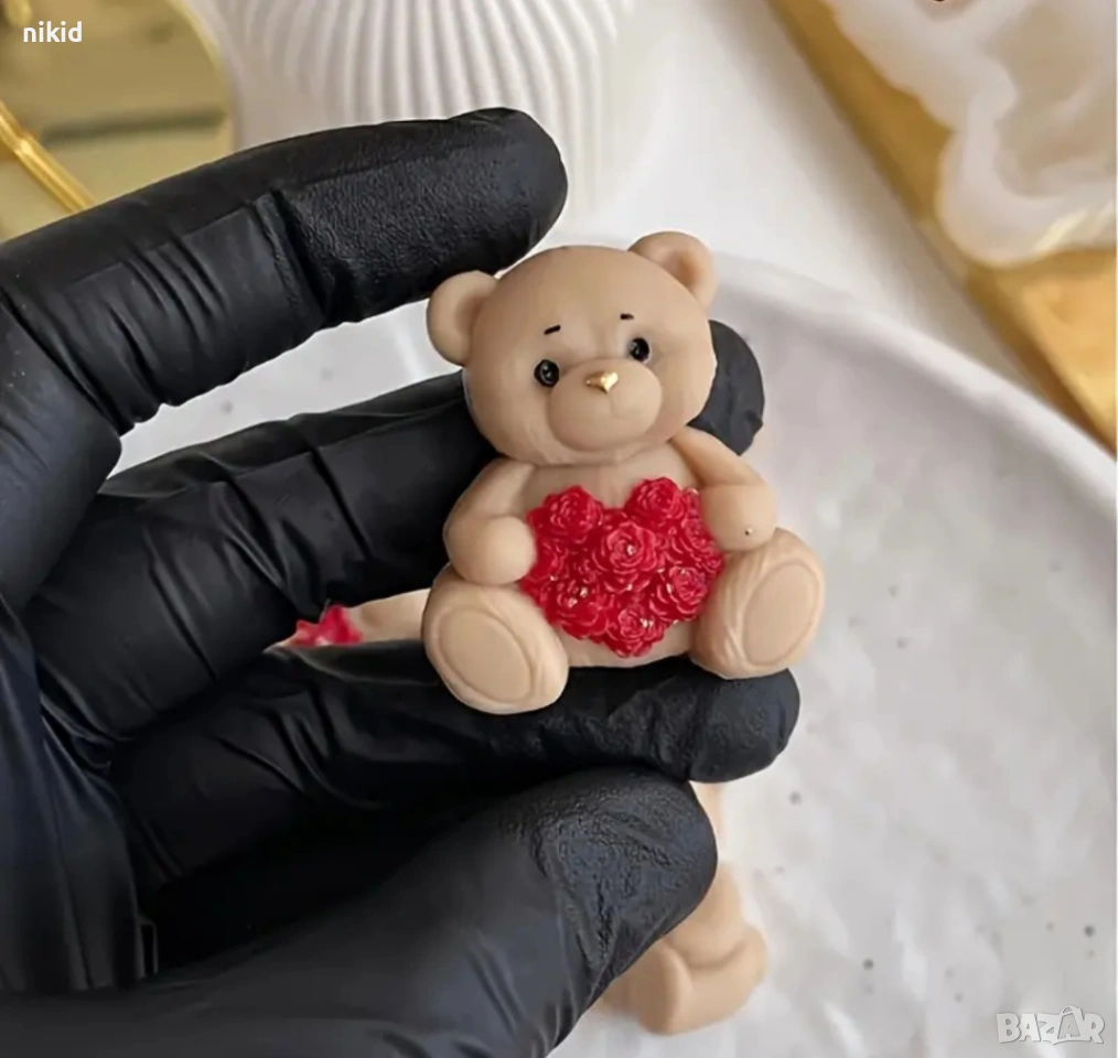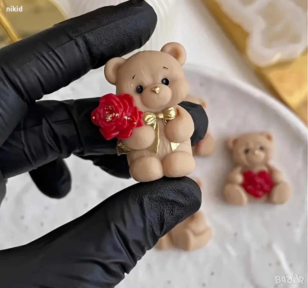 4 пози мече мечета сърце букет цветя силиконов молд форма фондан шоколад гипс смола бонбони декор → Обява 53741092