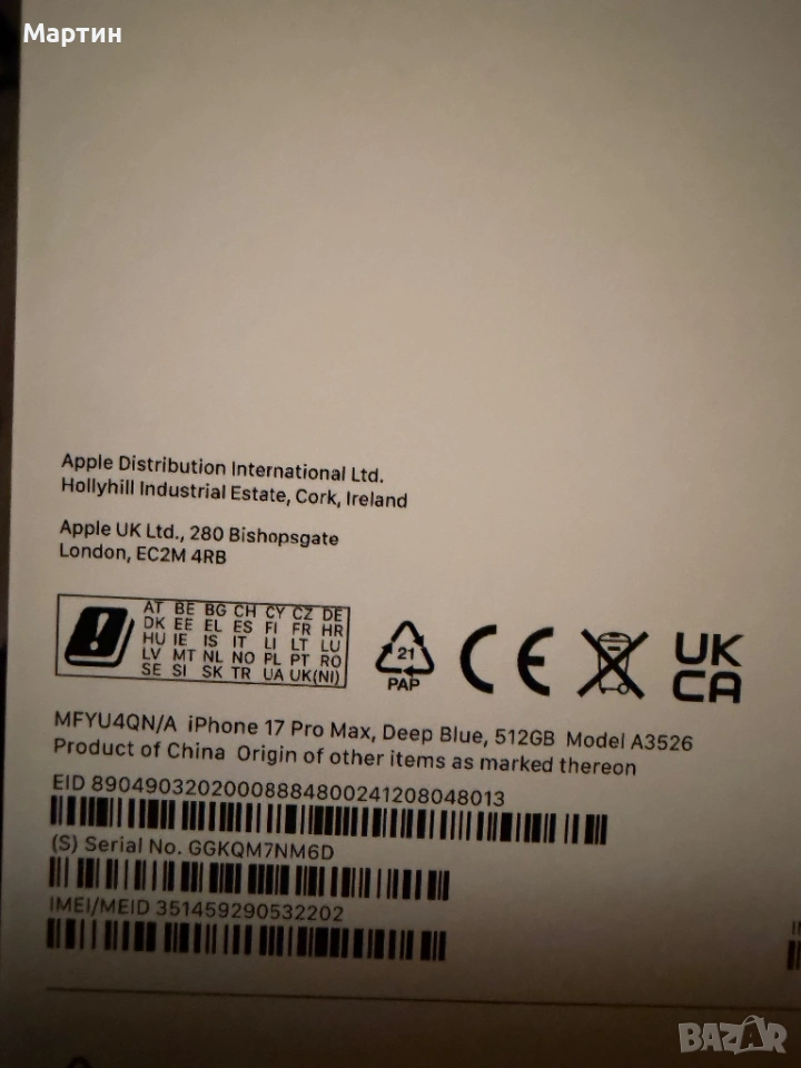 iPhone 17 pro max 512 gb, снимка 1 - Apple iPhone - 53741219 iPhone 17 pro max 512 gb, снимка 2 - Apple iPhone - 53741219 iPhone 17 pro max 512 gb, снимка 3 - Apple iPhone - 53741219 iPhone 17 pro max 512 gb, снимка 4 - Apple iPhone - 53741219 iPhone 17 pro max 512 gb, снимка 5 - Apple iPhone - 53741219 1/5