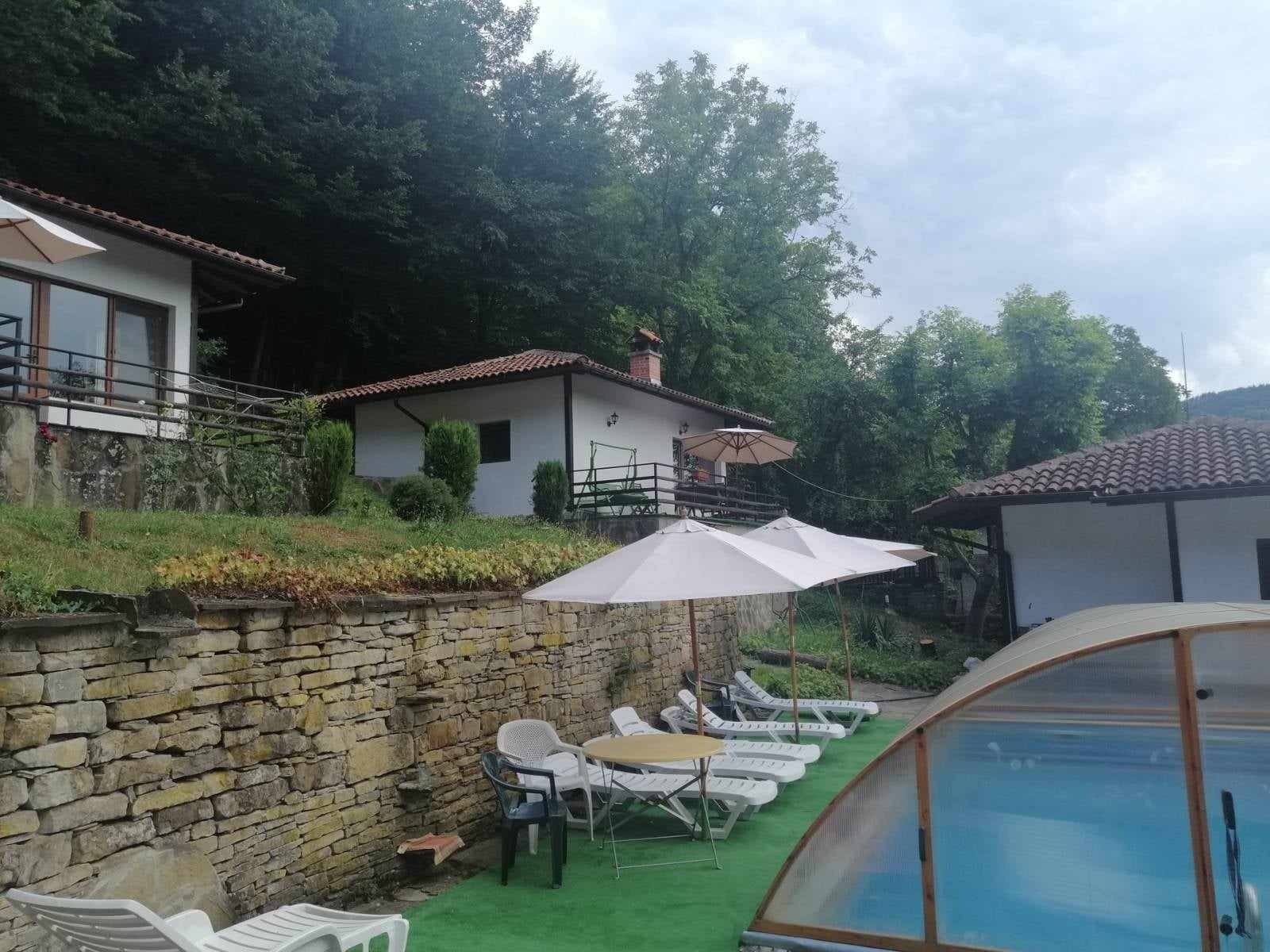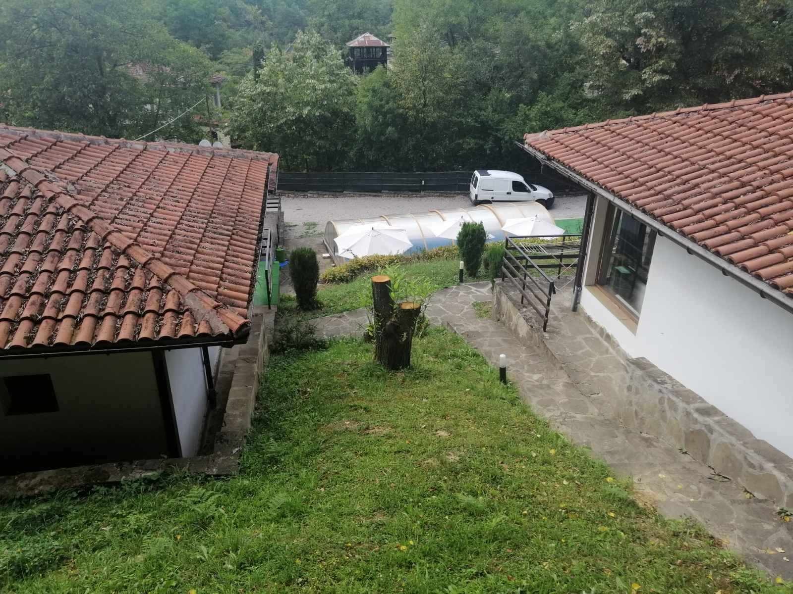 Продава се дейтващ комплекс от пет къщи за гости + механа + басейн с подвижен покрив. Разположен сред страхотна природа, граничещ с река и гора. Имота е с категоризация. -Комплекса от къщи за гости представлява ансамбъл от: