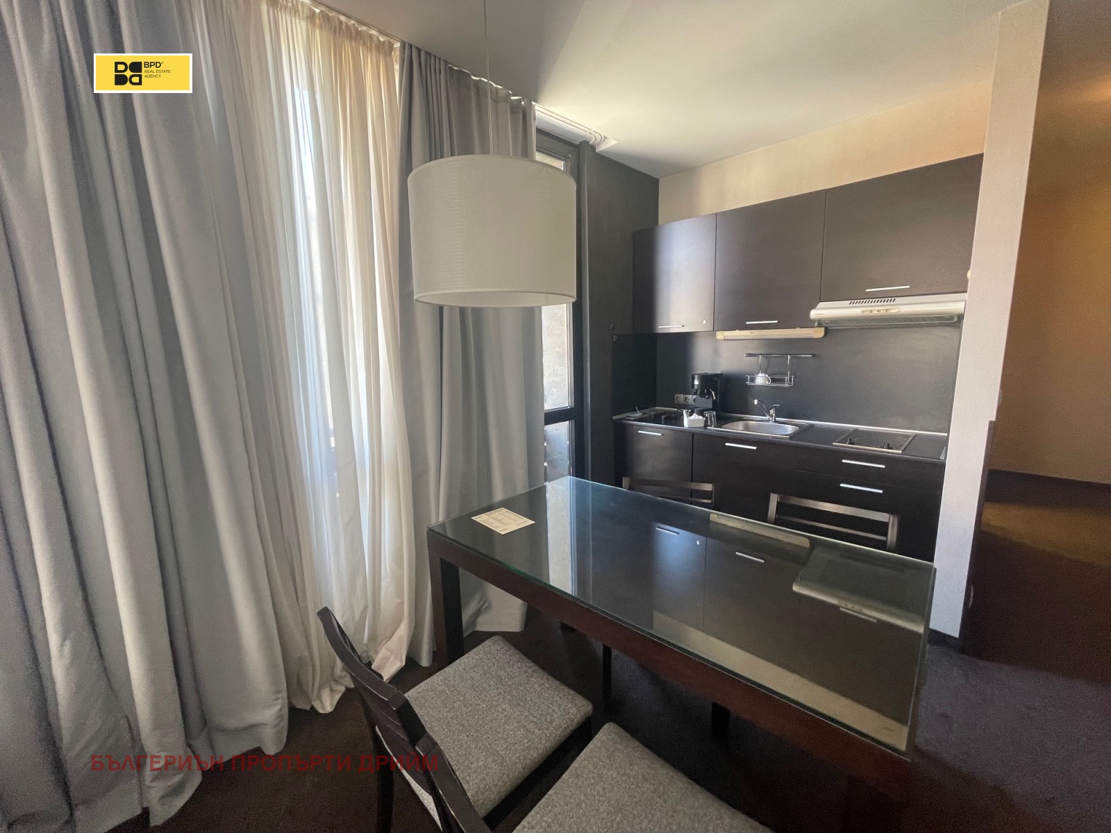 БПД ООД предлага за продажба напълно обзаведен двустает апартамент в пет звездния комплекс Лъки Банско. На чиста застроена площ от 64 кв.м. са разположени кухнески кът, кът за хранене и мека мебел, от дневната се влиза в преходна спалня напълно обзаведена с двойно легло, голям гардероб, нощни шкафчета и тоалетка, баня с тоалетна и малък коридор. Жилището е напълно обзаведено и оборудвано. Възможнонст както за лично ползване, така и за отдаване под наем, използвайки мениджмънта на комплекса. Годишна такса поддържка, която дава достъп до пет звездни услуги на своите гости и посетители - луксозно спа, голям вътрешен басейн, отопляеми общи части, уютен лоби бар, отлични ресторанти.