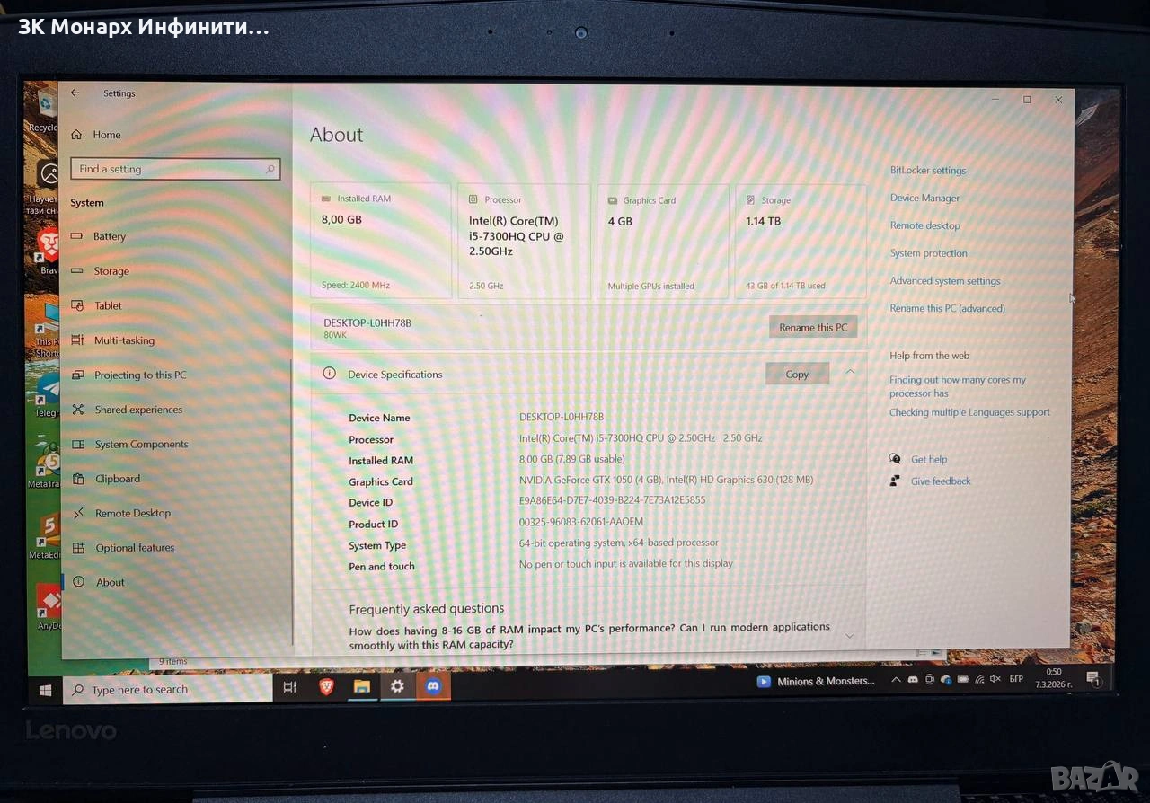 Lenovo Legion Y520-15IKBN /с безжична мишка и зарядно/