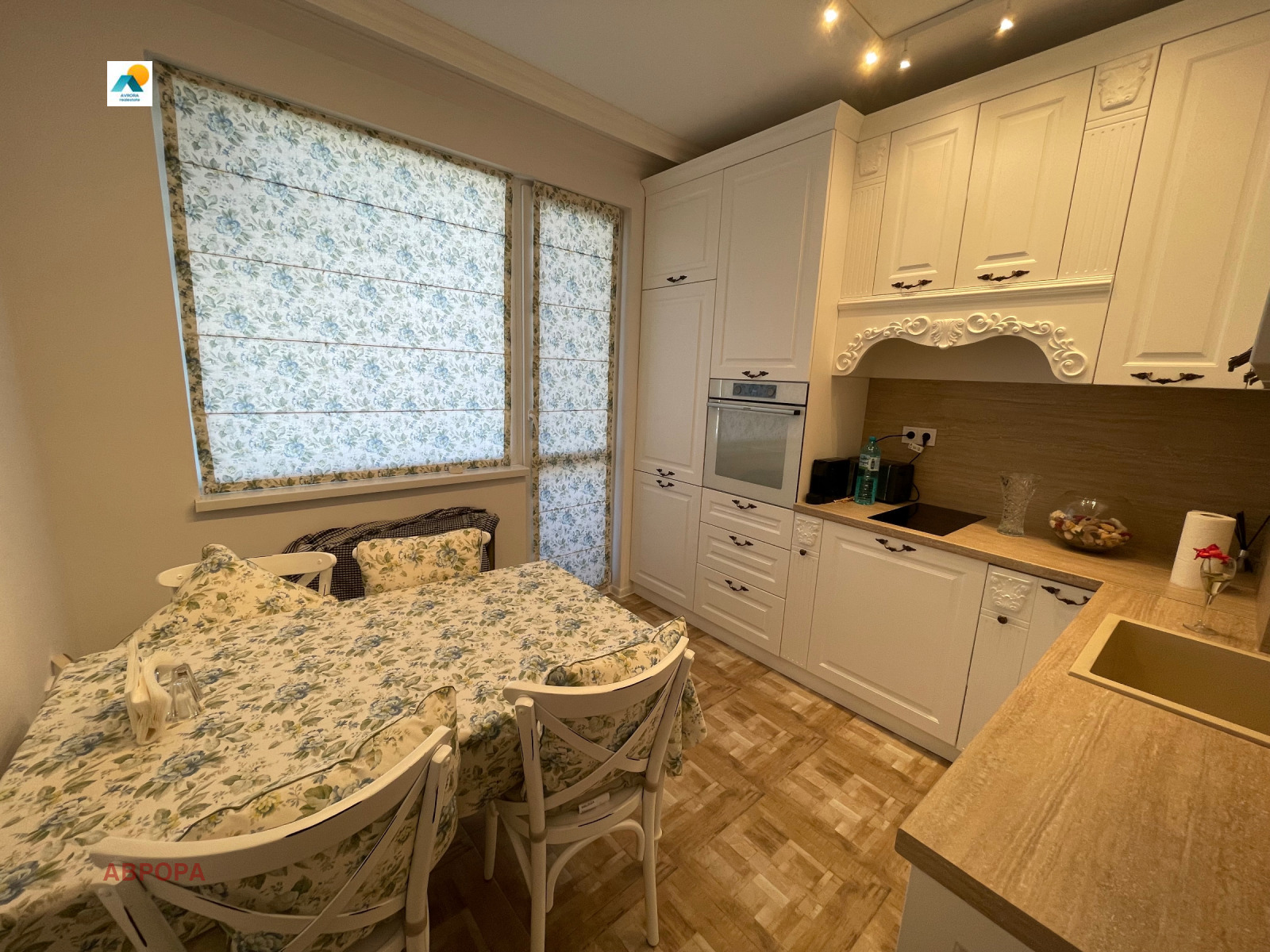 Напълно обзаведен двустаен апартамент в масивна тухлена кооперация на много комуникативно място на ъгъла на бил Васил Левски и ул. Св.св. Кирил и Методий . В момента е обособена втора спалня в едната част на хола, която може да се махне при нужда и дивана да се премести там ( на последните снимки се вижда как е било без леглото), също е възможно да се постави маса за хранене, ако се махне леглото или ако се ползва като тристаен, да се направи някаква преградна стена между хола и втората спалня, всичко е въпрос на договорка според нуждите на наемателя. Обзавеждането е ново, имота е след ремонт. Състои се от: хол със спална част, която може да се махне, отделна спалня, отделна кухня, тераса, санитарен възел и антре. Жилището е много светло и просторно. Собственикът иска гаранционен депозит в размер на два месечни наема. За контакти: 0886815974.