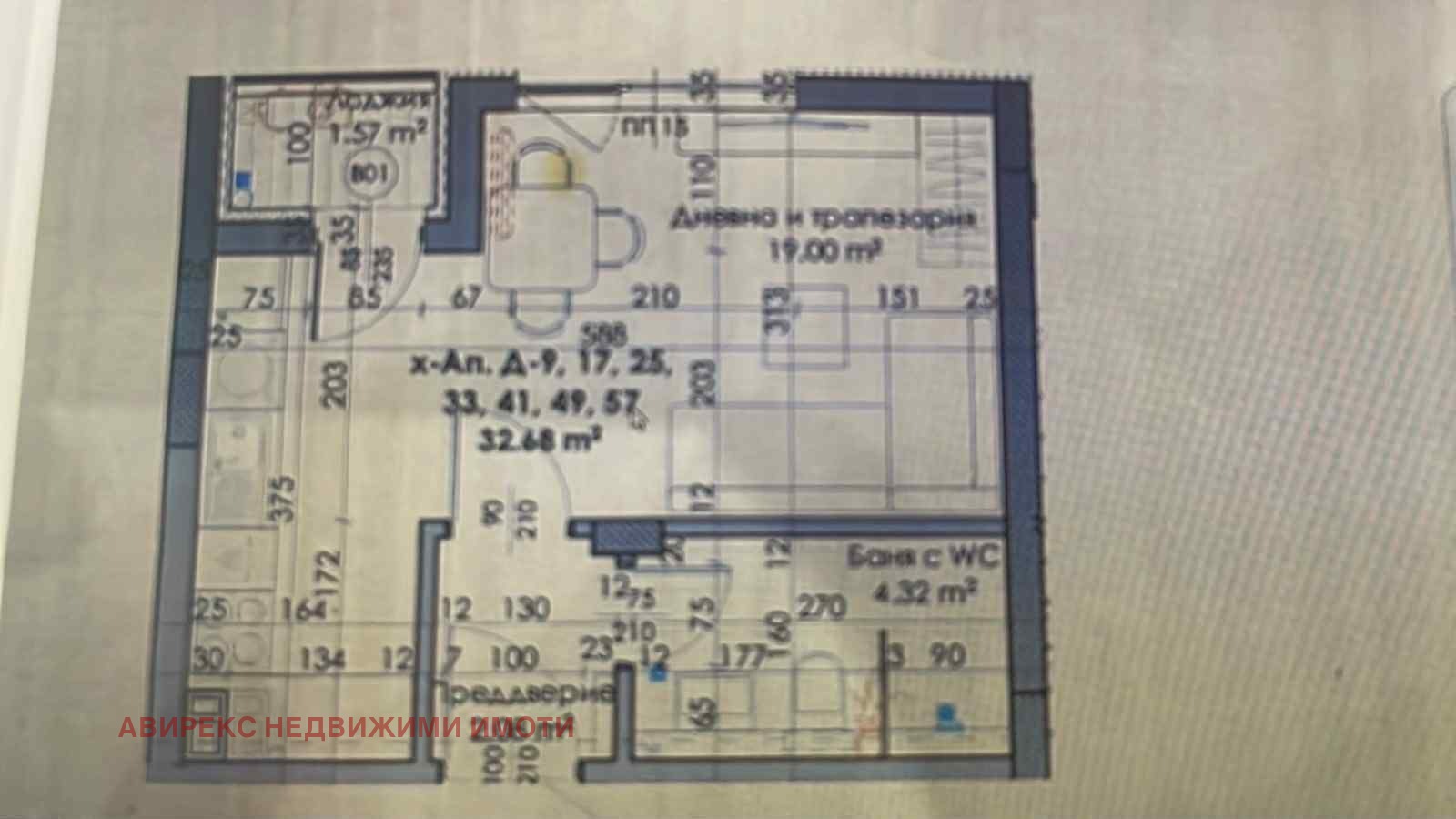 Жилището е с обща площ 42 кв.м и включва тераса, както и изба с площ 2,5 кв.м (извън посочената квадратура).