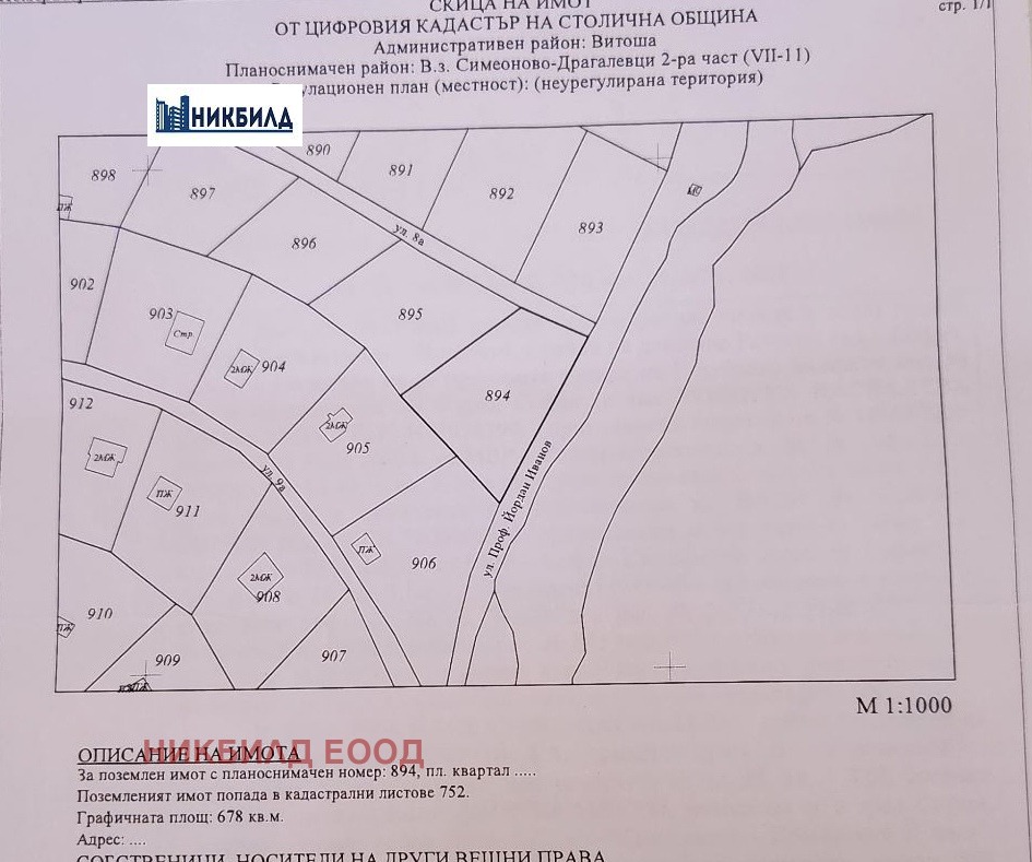 Агенция ' Никбилд' предлага за продажба ПОЗЕМЛЕН ИМОТ с идентификатор: 18174.21.4 находящ се в с. Гурмазово, общна Божурище, Местност: Новините. Площ 1 803 кв.м., в непосредствена близост до Индустриална зона Божурище.