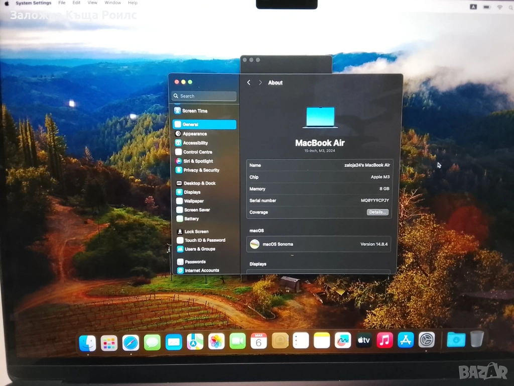 MacBook Air M3, 256 GB. Лаптопът е в отлично състояние, без никакви забележки. Работи бързо и без проблеми.