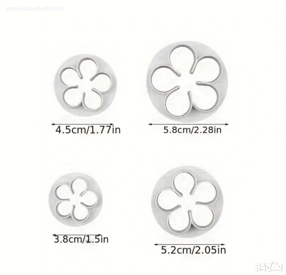 4 броя цветя пластмасови резци резец тесто бисквитки фондан декорация торта , снимка 1 - Форми - 53742098 4 броя цветя пластмасови резци резец тесто бисквитки фондан декорация торта , снимка 2 - Форми - 53742098 4 броя цветя пластмасови резци резец тесто бисквитки фондан декорация торта , снимка 3 - Форми - 53742098 4 броя цветя пластмасови резци резец тесто бисквитки фондан декорация торта , снимка 4 - Форми - 53742098 4 броя цветя пластмасови резци резец тесто бисквитки фондан декорация торта , снимка 5 - Форми - 53742098 1/5