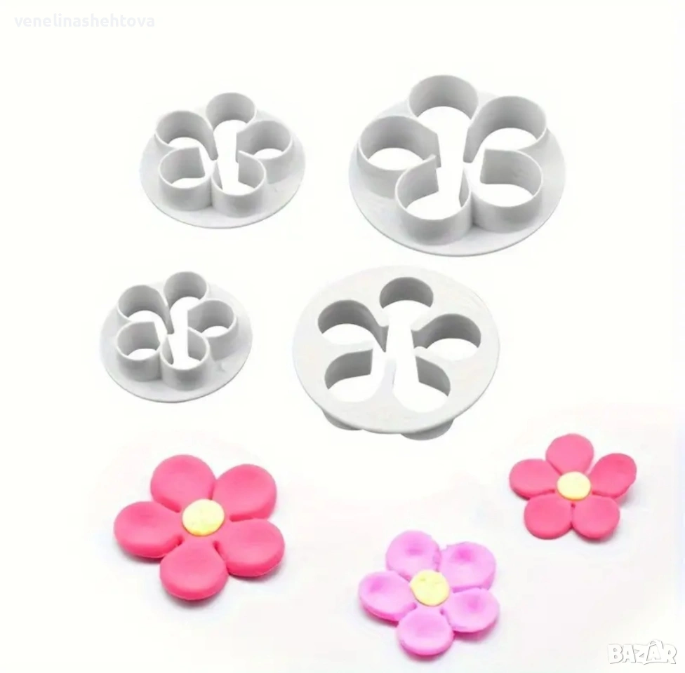 4 броя цветя пластмасови резци резец тесто бисквитки фондан декорация торта → Обява 53742098