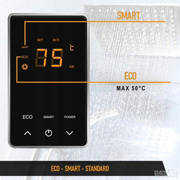 Налични режими на затопляне на вода: Стандартен / Еко / Интелигентен